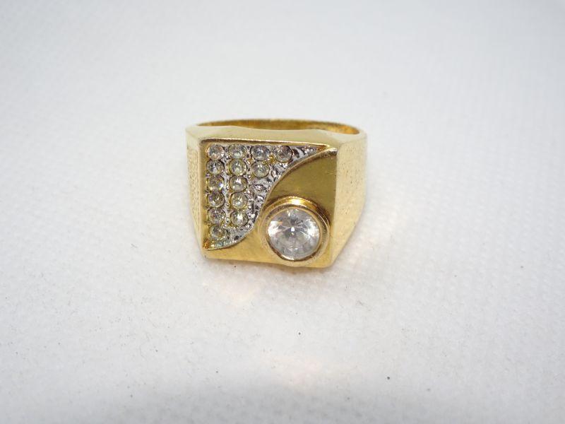 Gold Tone CZ & Rhinestone Las Vegas Style Mens Pinkie Ring - Size 9.5