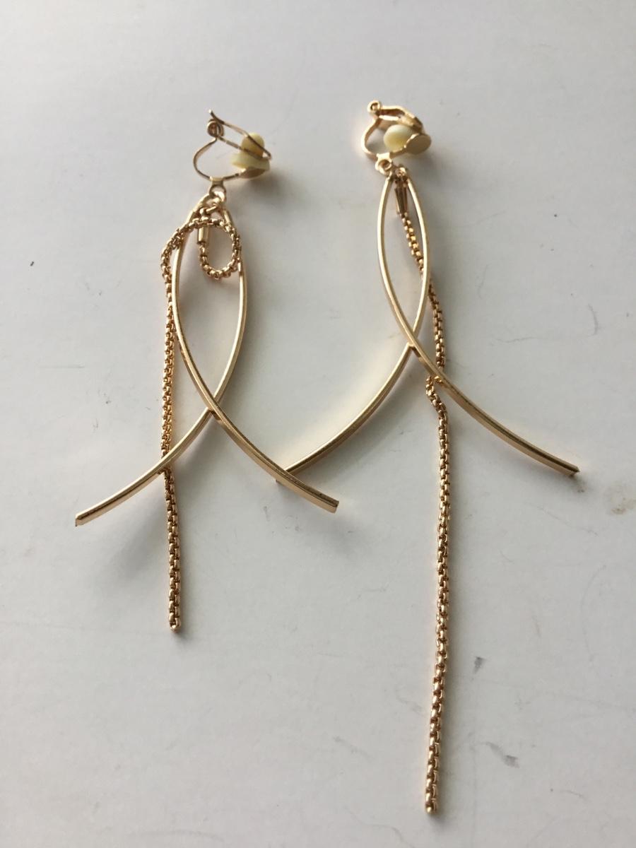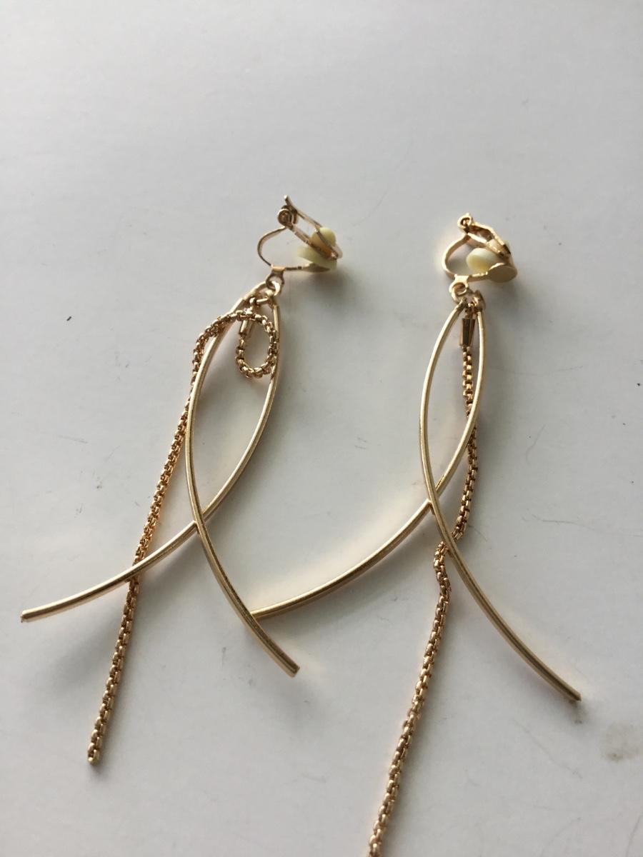Gold tone dangle clip on earrings