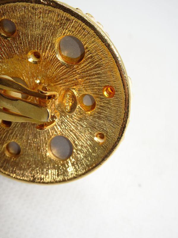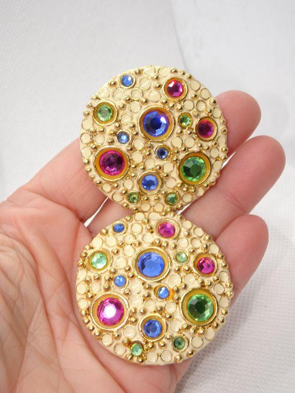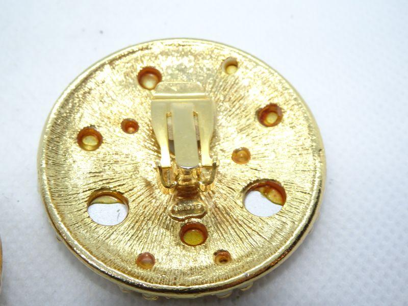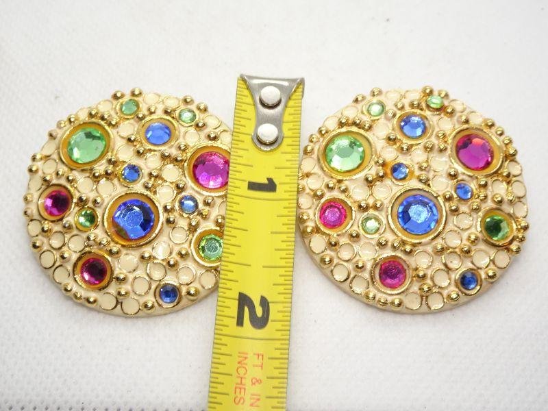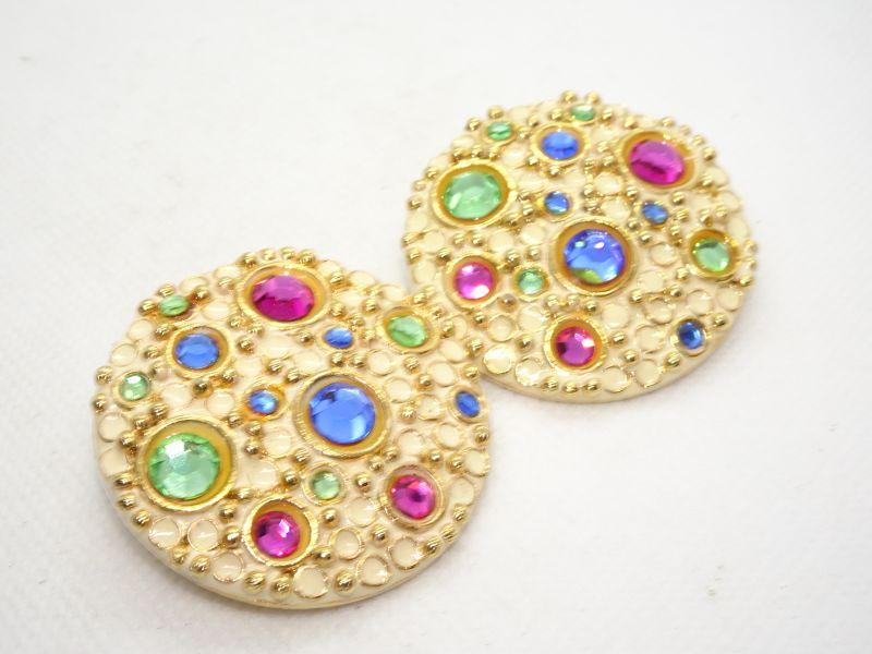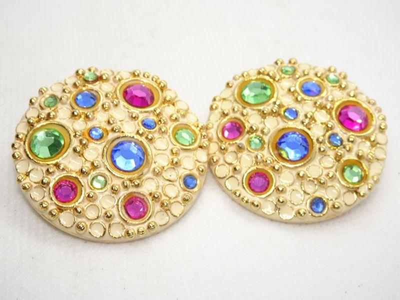 Gold Tone Disc Multi Colored Stone Clip Earrings - Reminds me of a planet