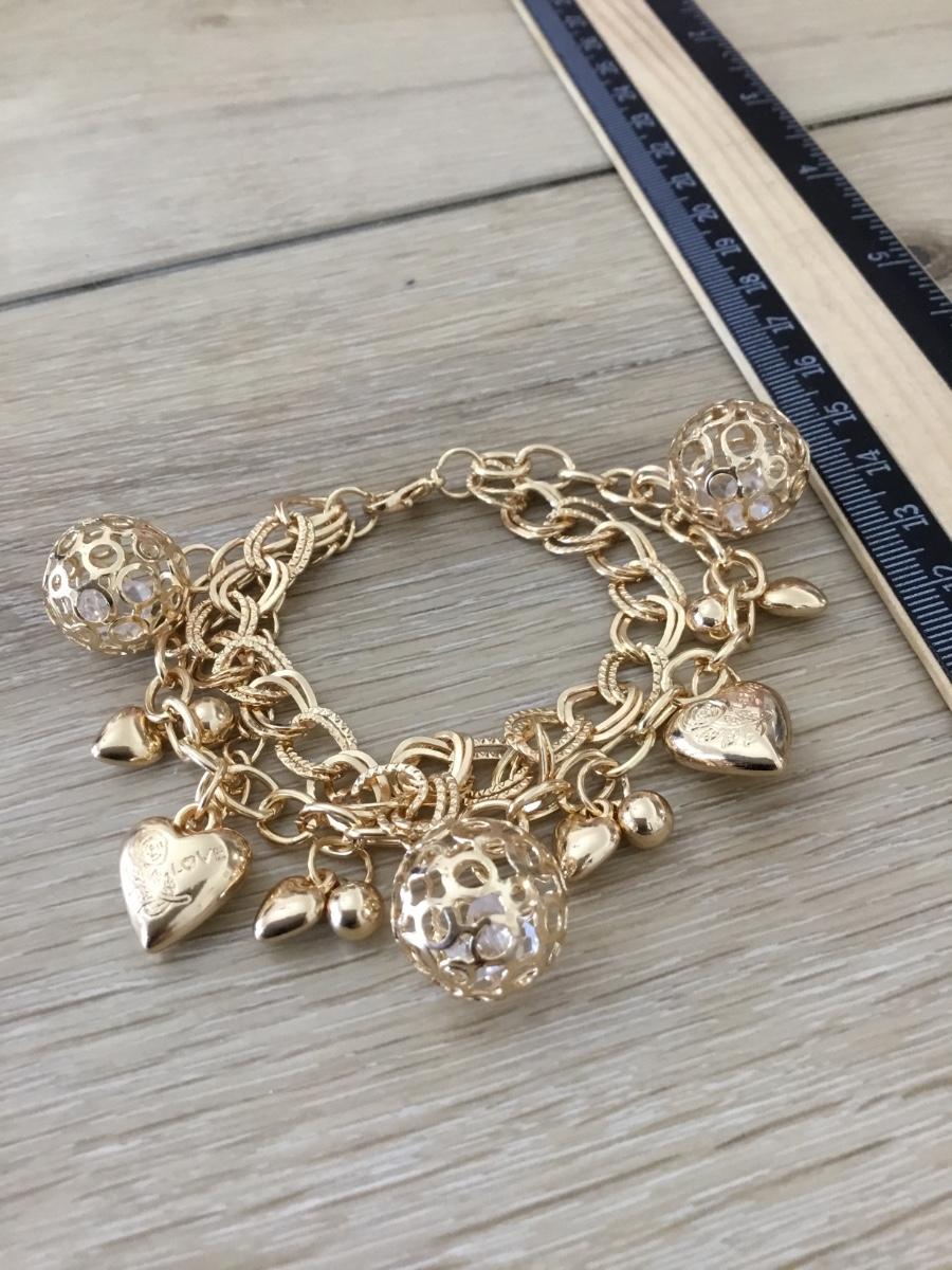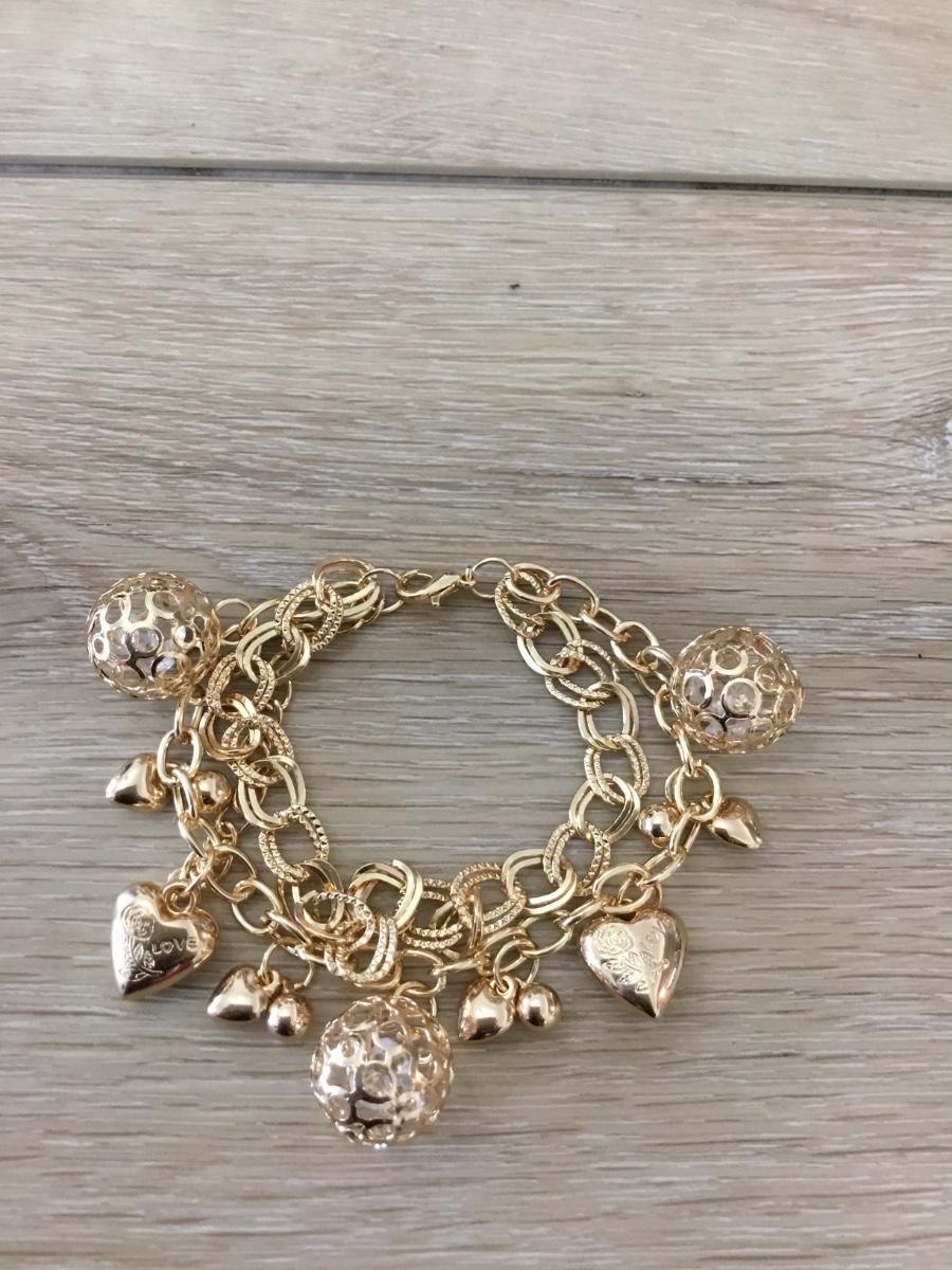 Gold tone double strand charm bracelet