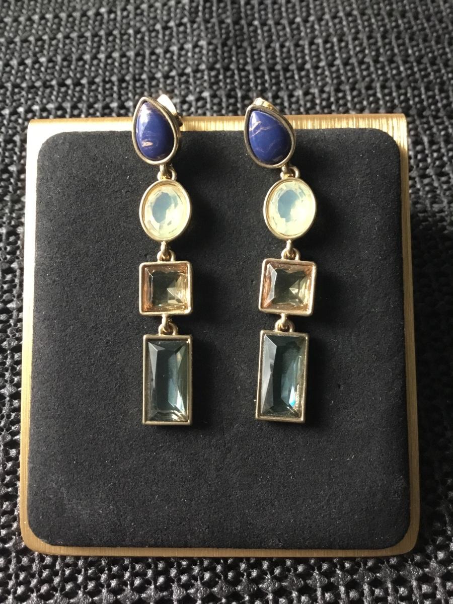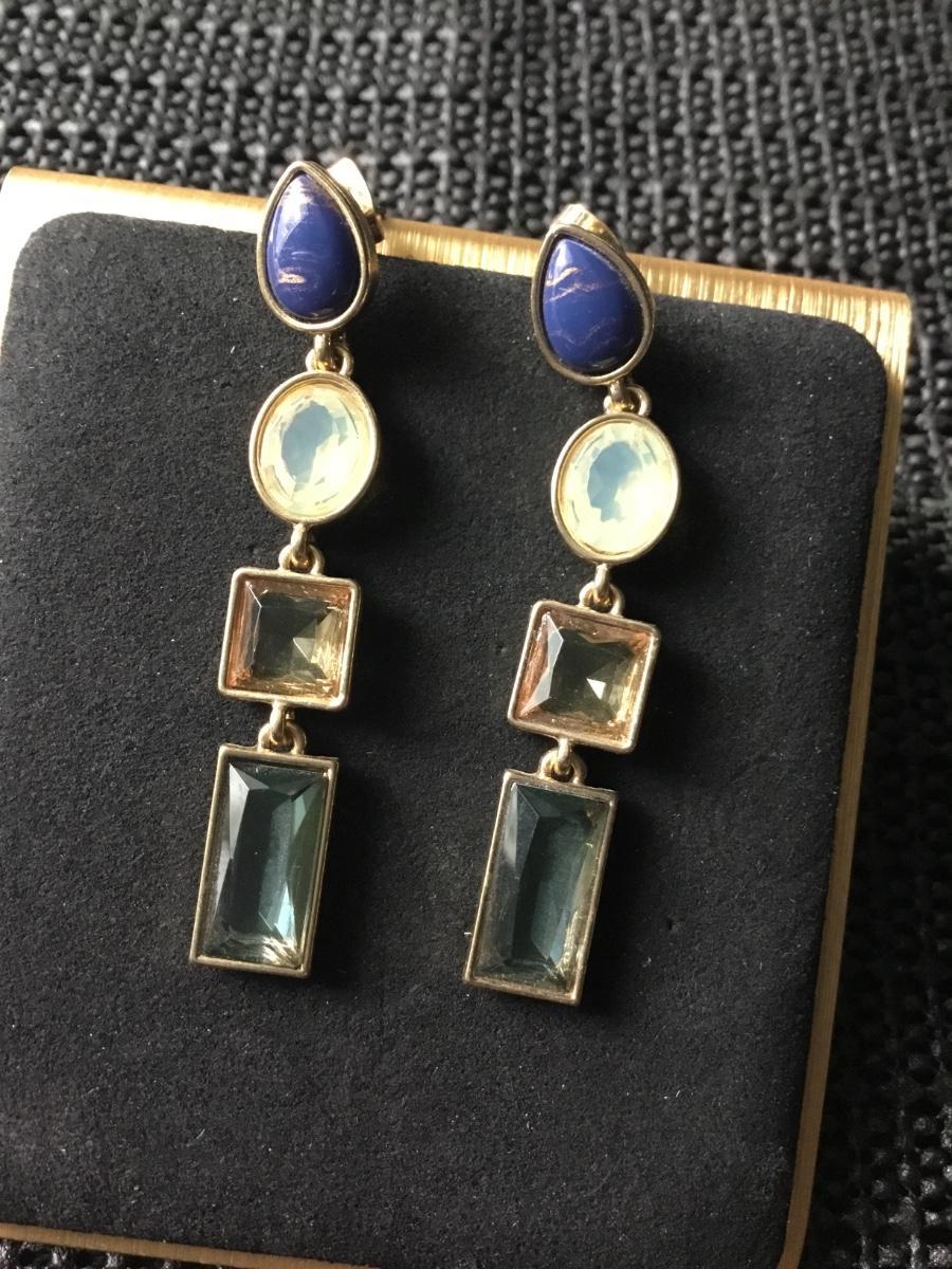 Gold tone drop earrings oval shapes gemstones