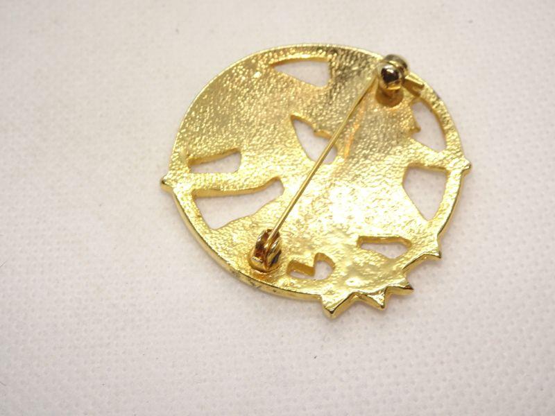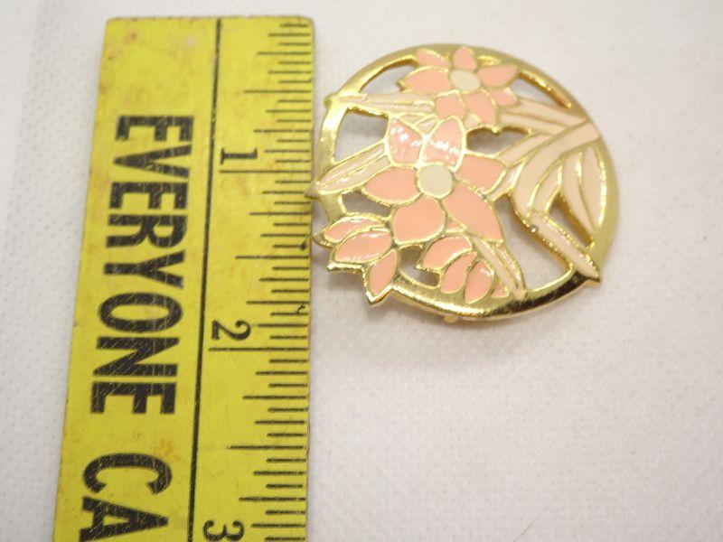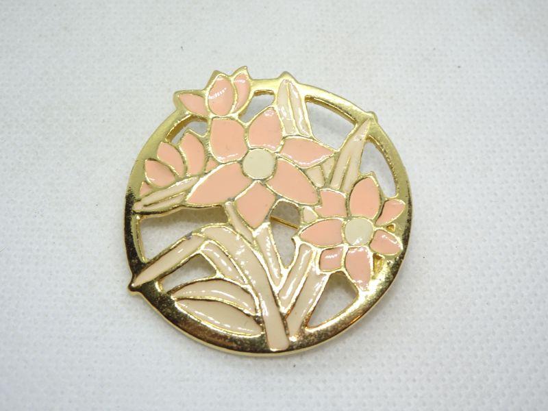 Gold Tone Enamel Flower Pin, Peach Flowers