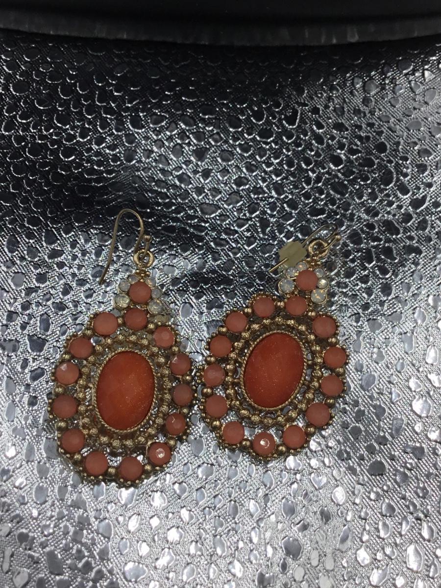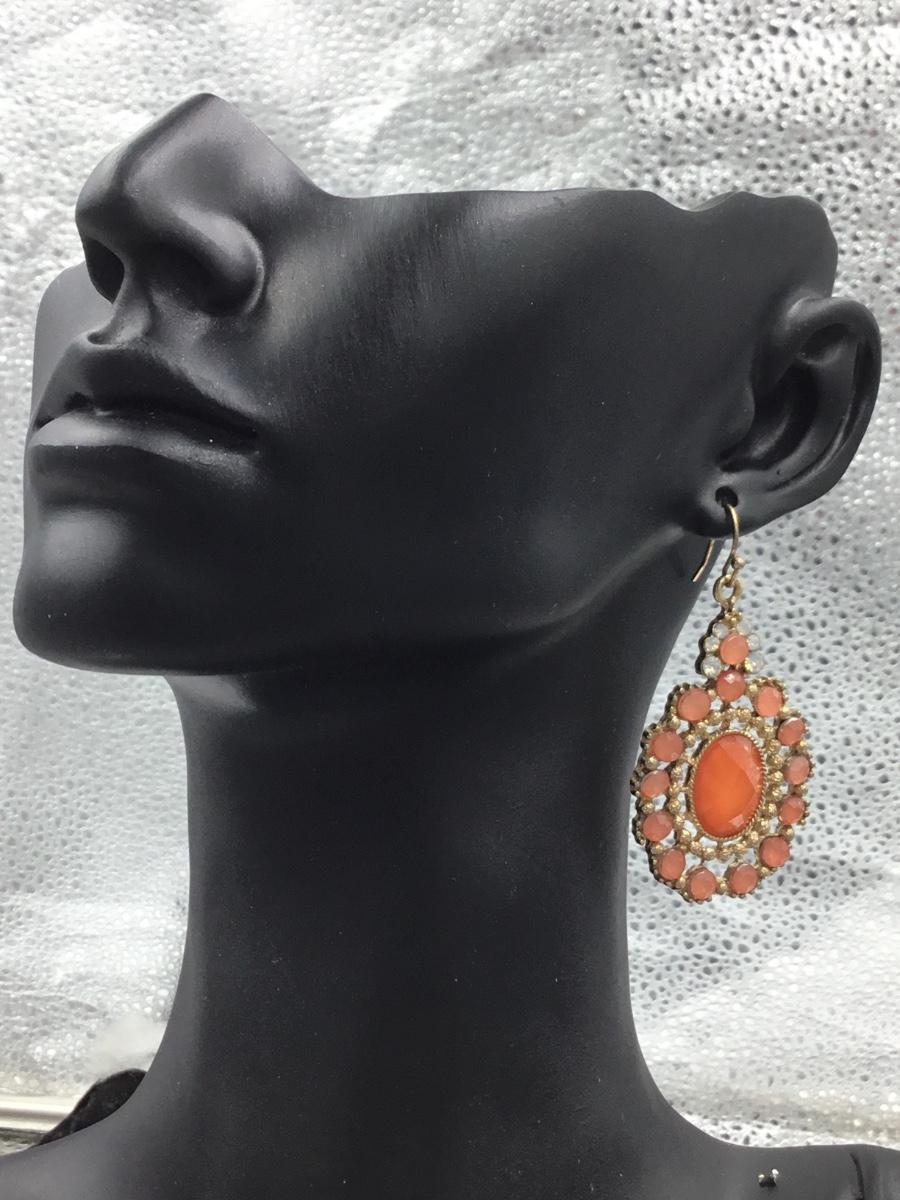 Gold tone fashion coral colored earrings