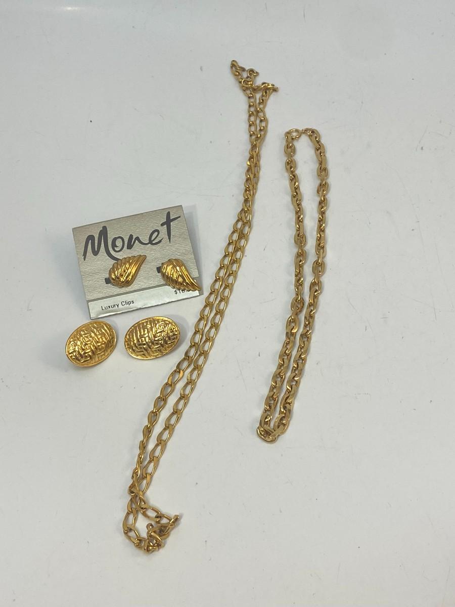 Gold Tone Fashion Jewelry Lot Necklaces & Clip Style Earrings. Good condition.