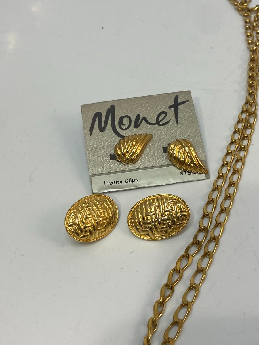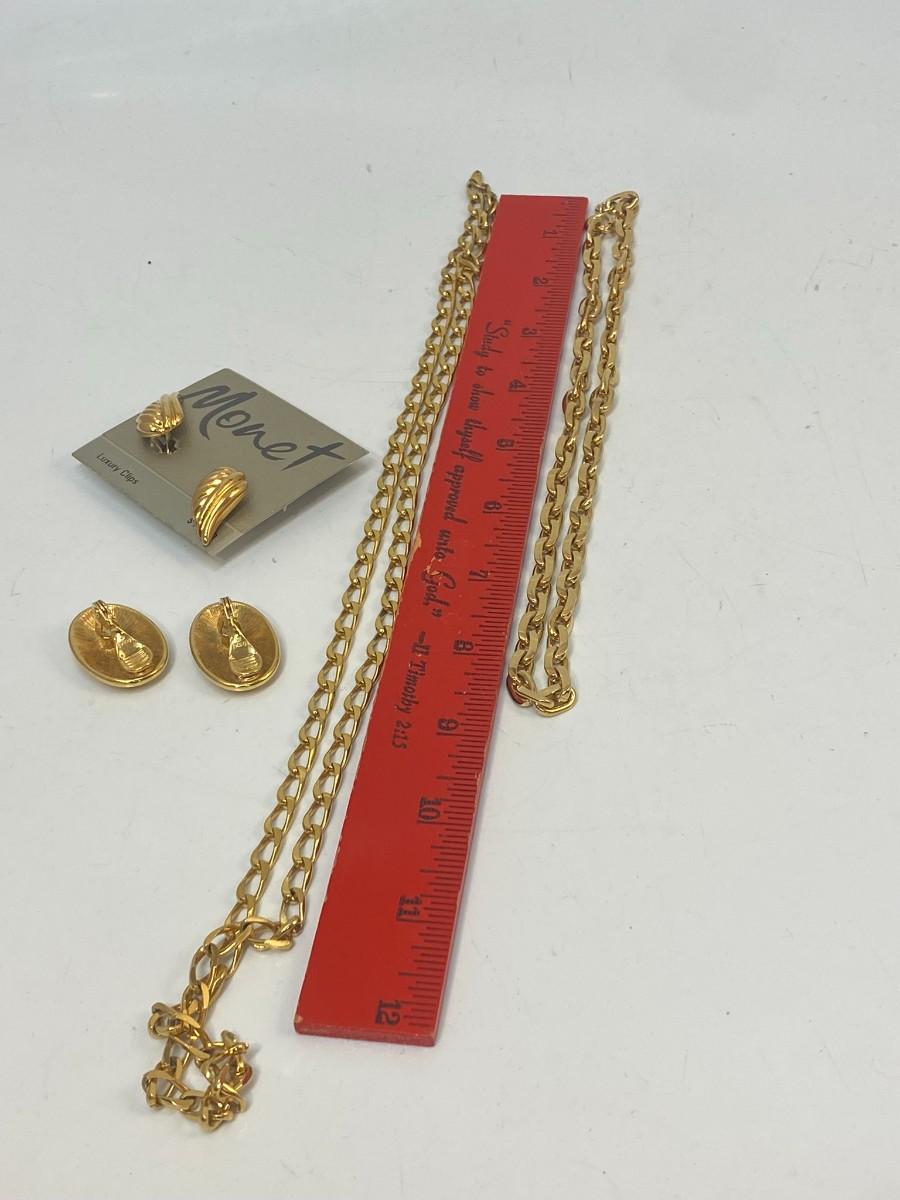 Gold Tone Fashion Jewelry Lot Necklaces & Clip Style Earrings