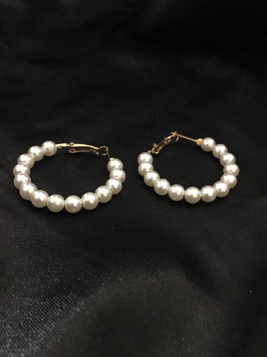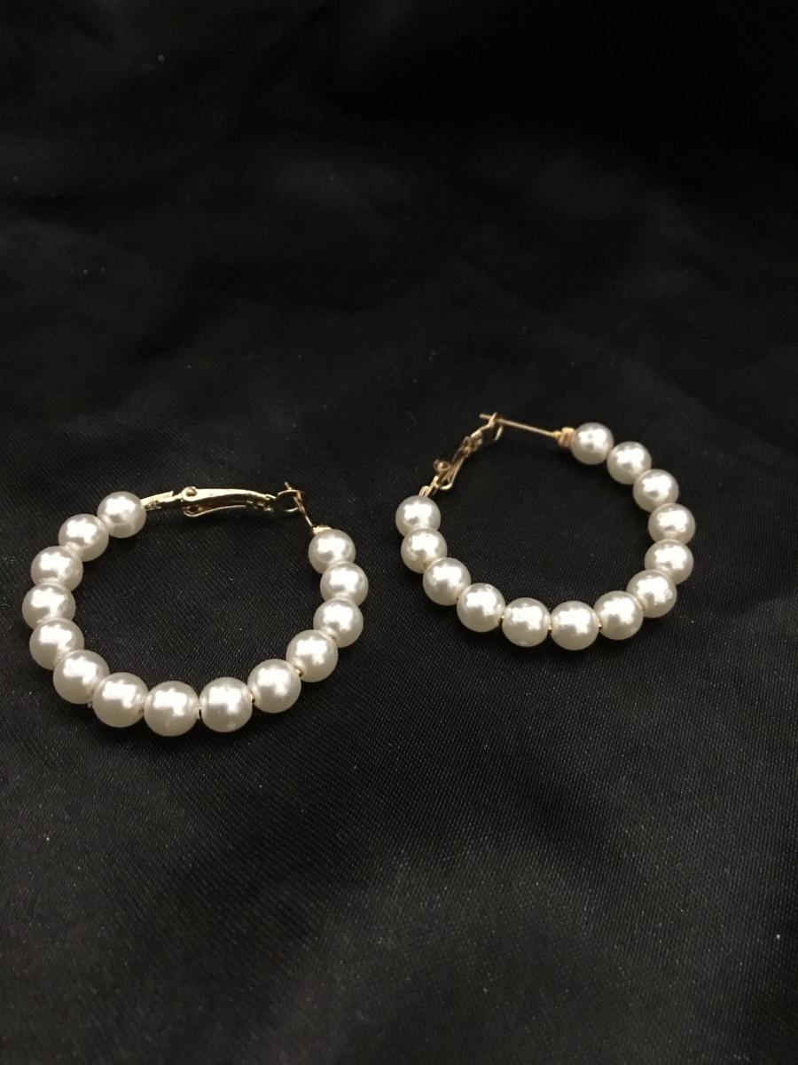 Gold tone faux pearl hoop earrings