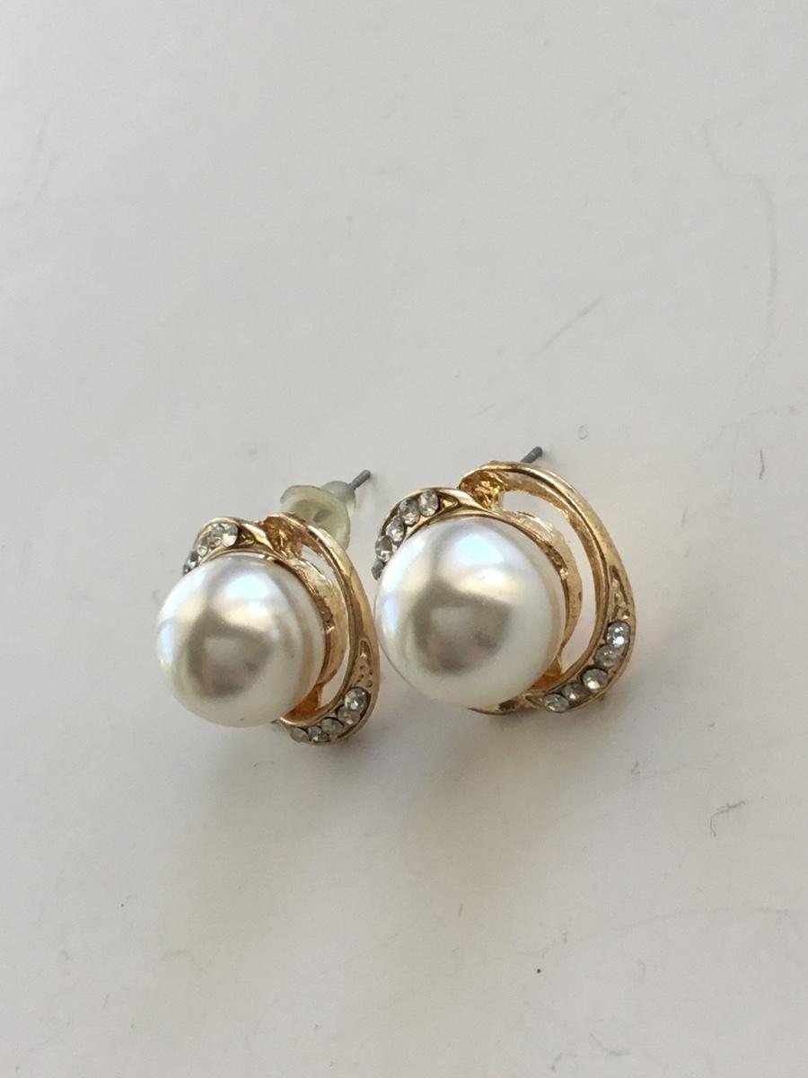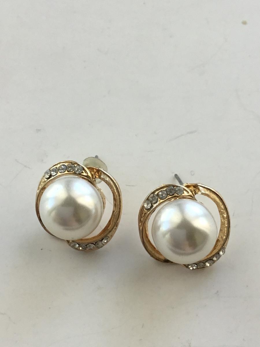 Gold tone faux pearl stud earrings