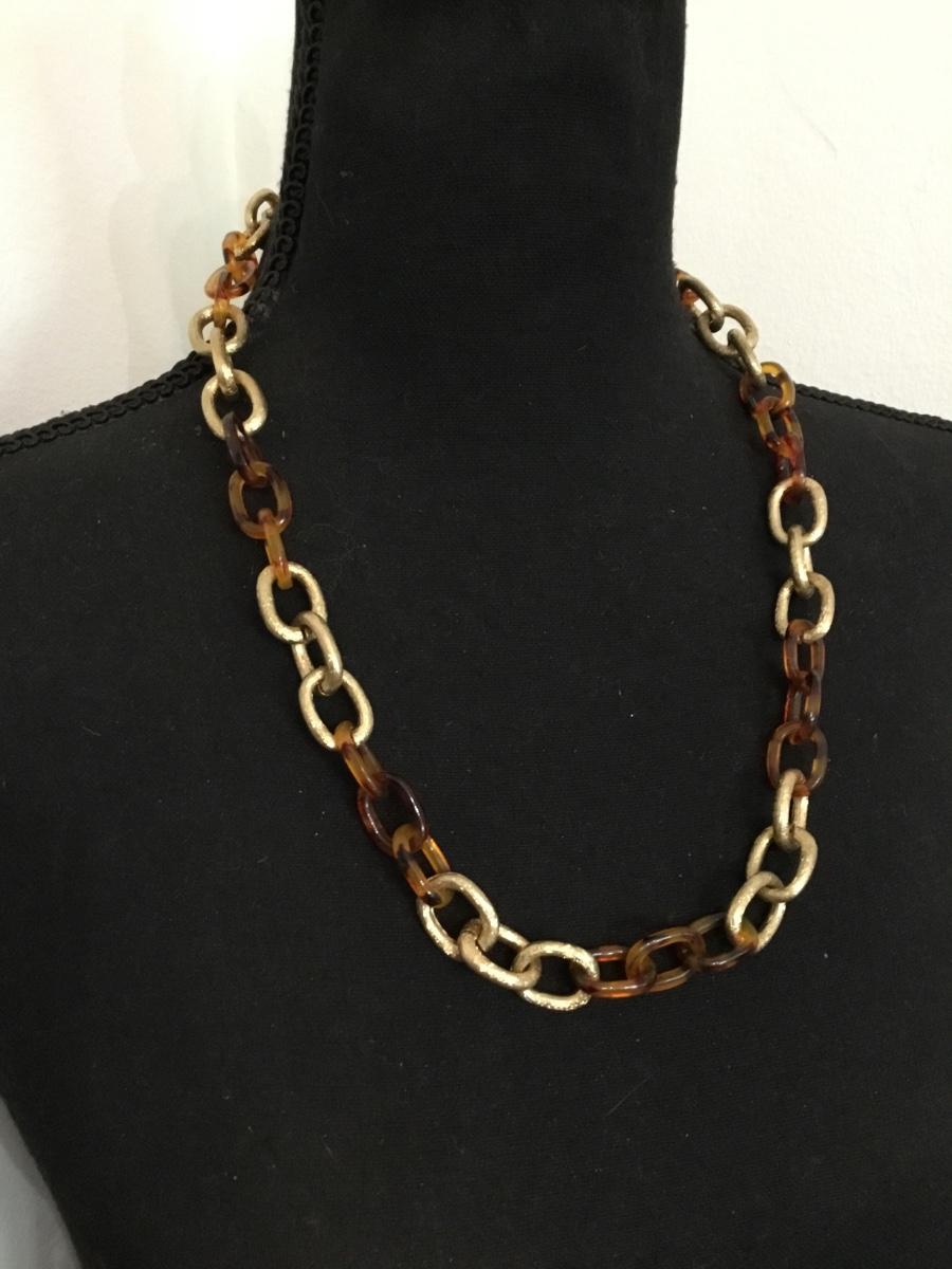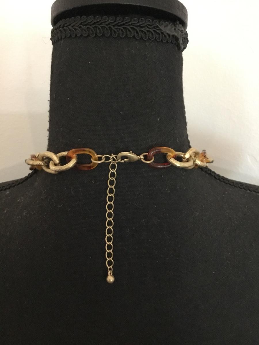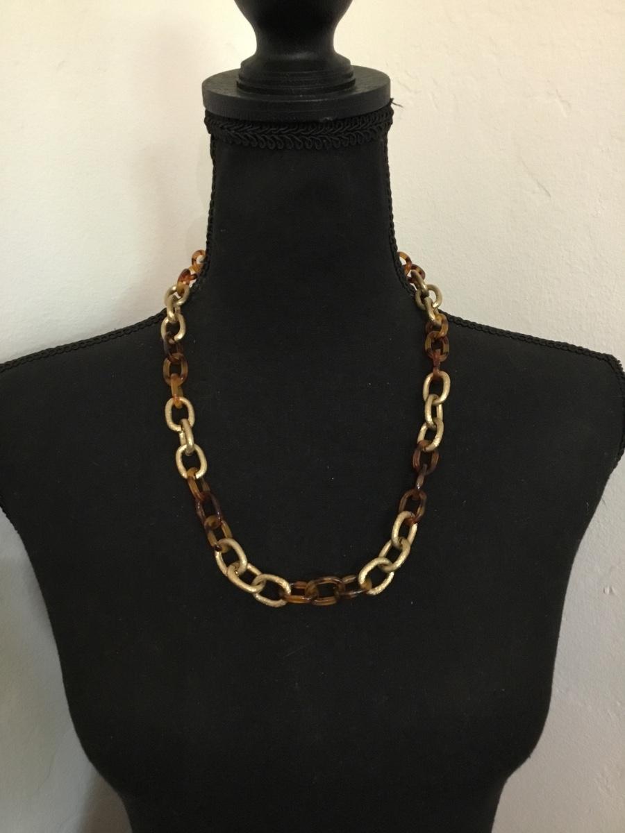 Gold tone, faux, tortoise, shell chain, link, necklace