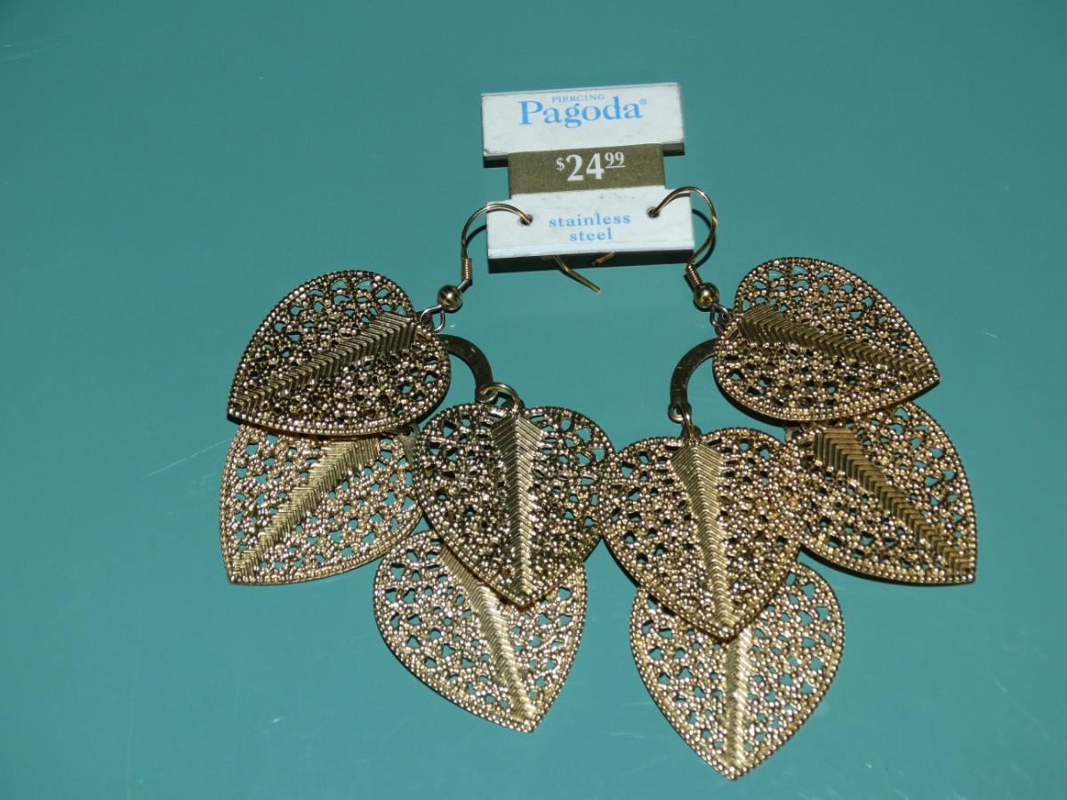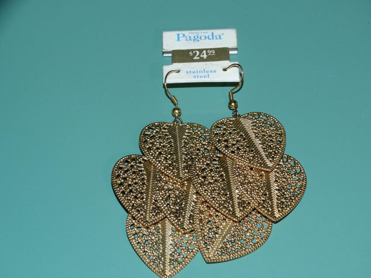 Gold Tone Filagree Gold Leaf Earrings, Lightweight
