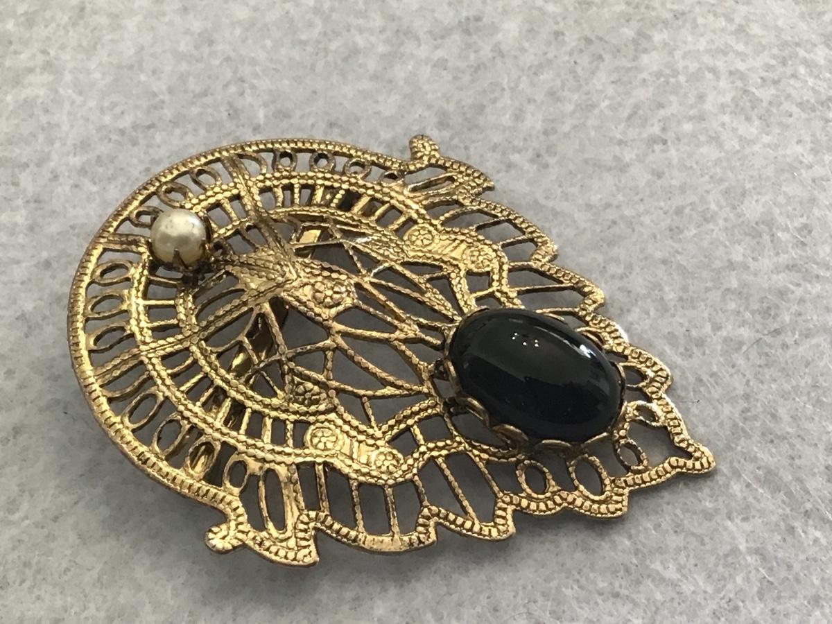Gold Tone Filagree Vintage Brooch