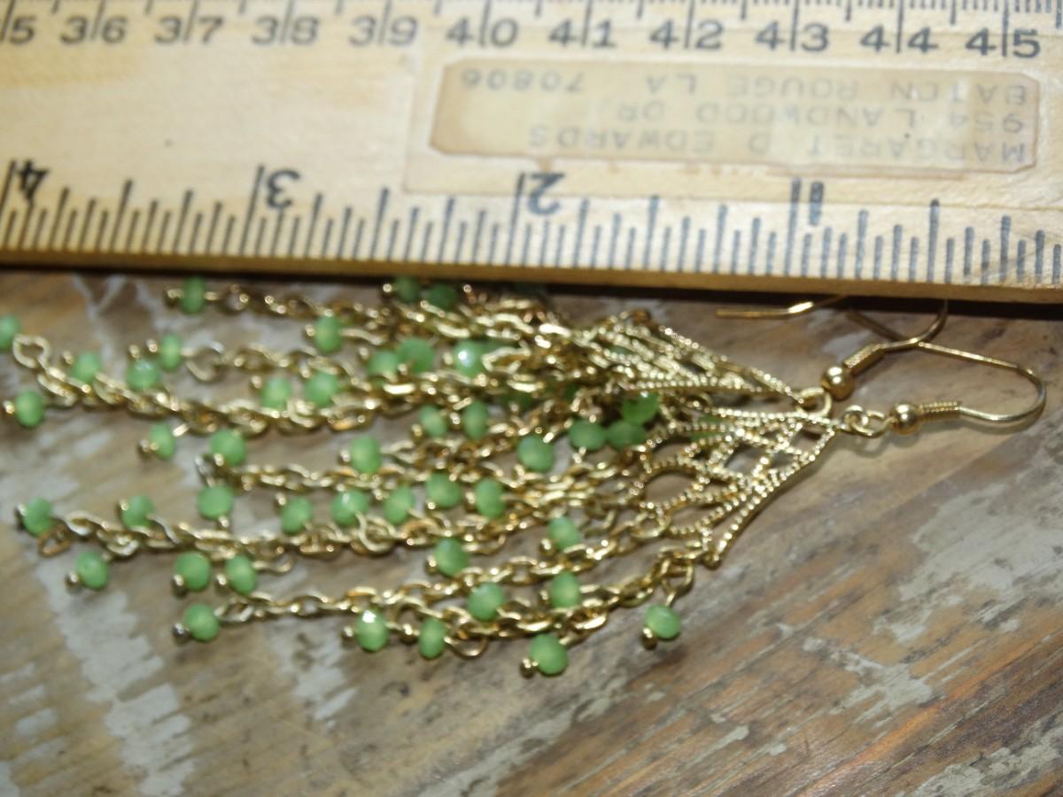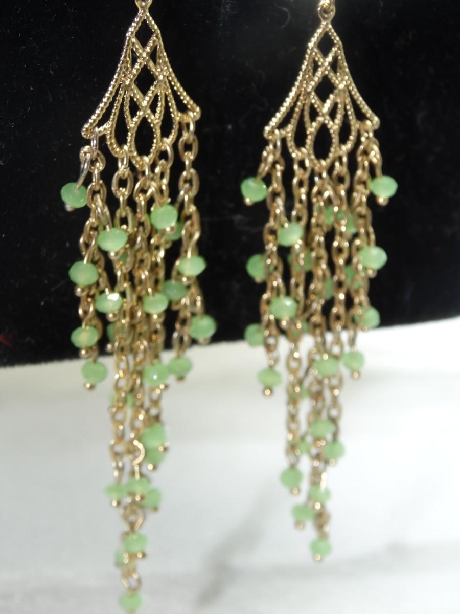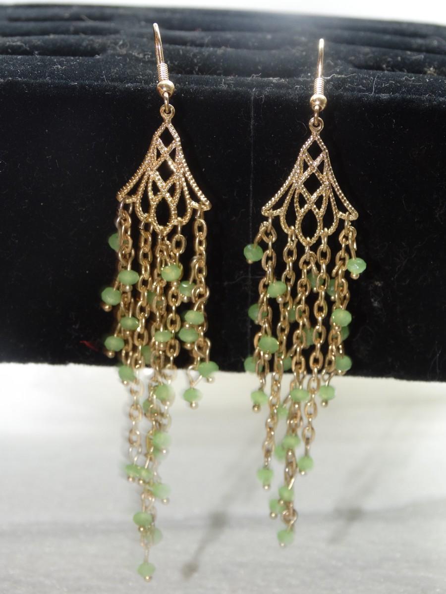 Gold Tone Filigree Drop Dangle Green Earrings