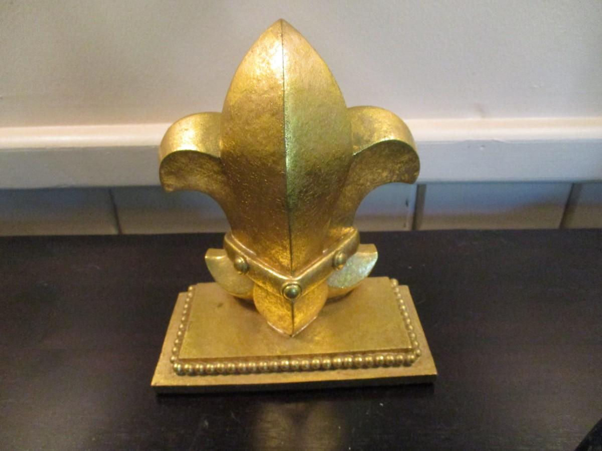 Gold Tone Fleur de Lis Bookend - B