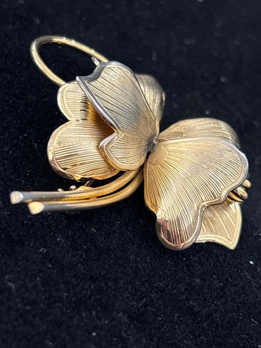 Gold tone flower brooch