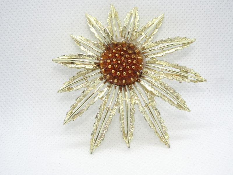 Gold Tone Flower Brooch - Signed Sarah Coventry