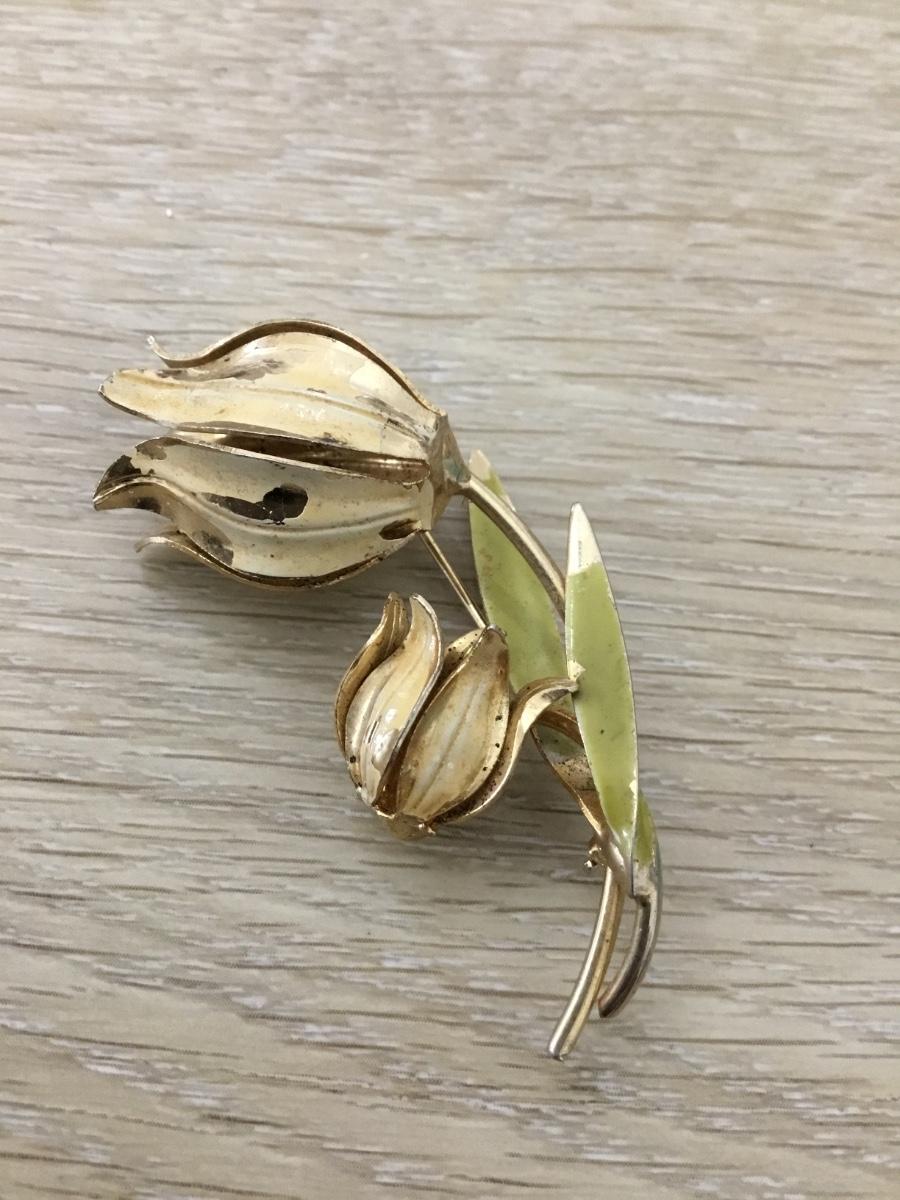 Gold tone flower tulip vintage pin