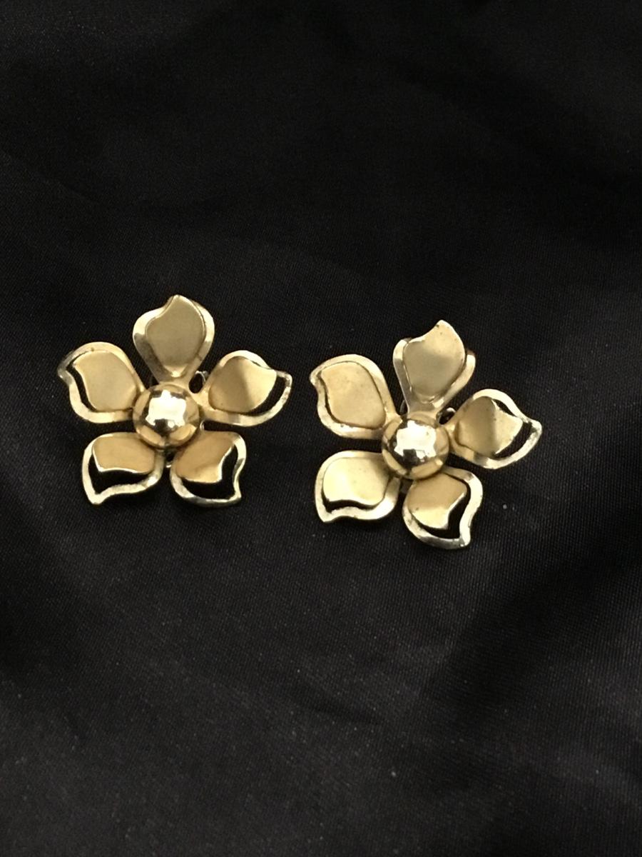 Gold tone flower vintage clip on earrings