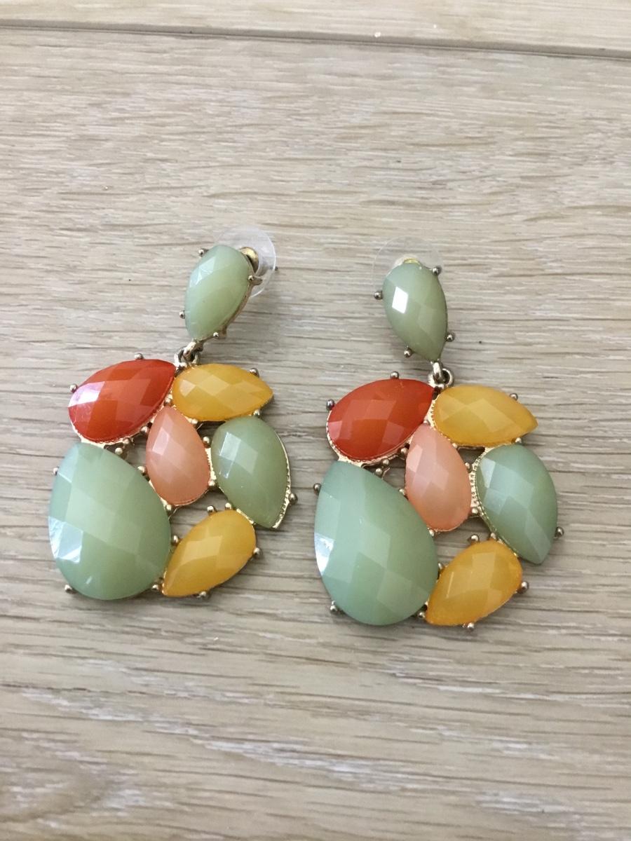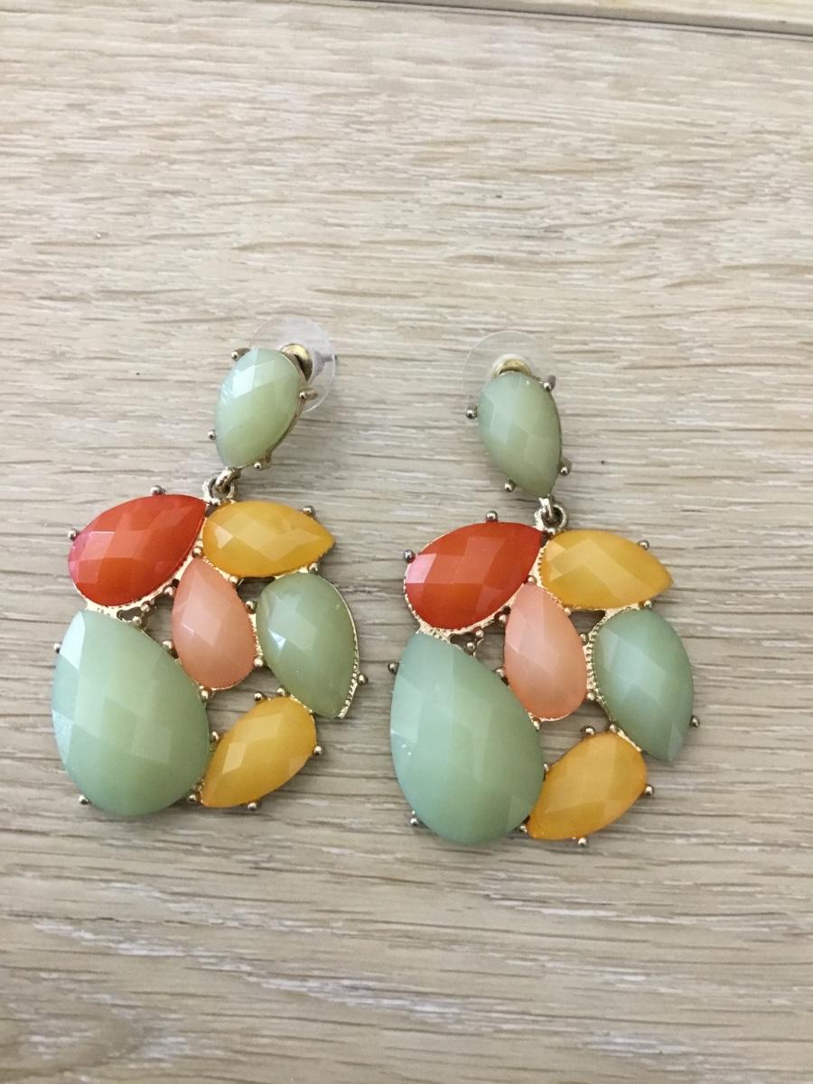 Gold tone gem type fashion statement earrings