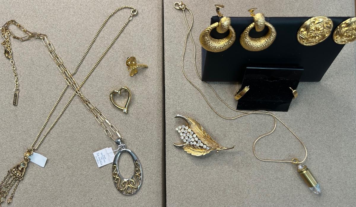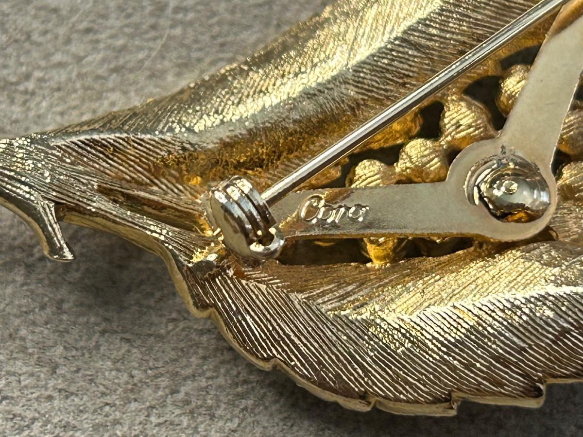 2 pierced & 1 clip, the Lia Sophia enhancer is brand new w/ tag. The dragonfly pin is Trifari & The large brooch is stamped Coro.