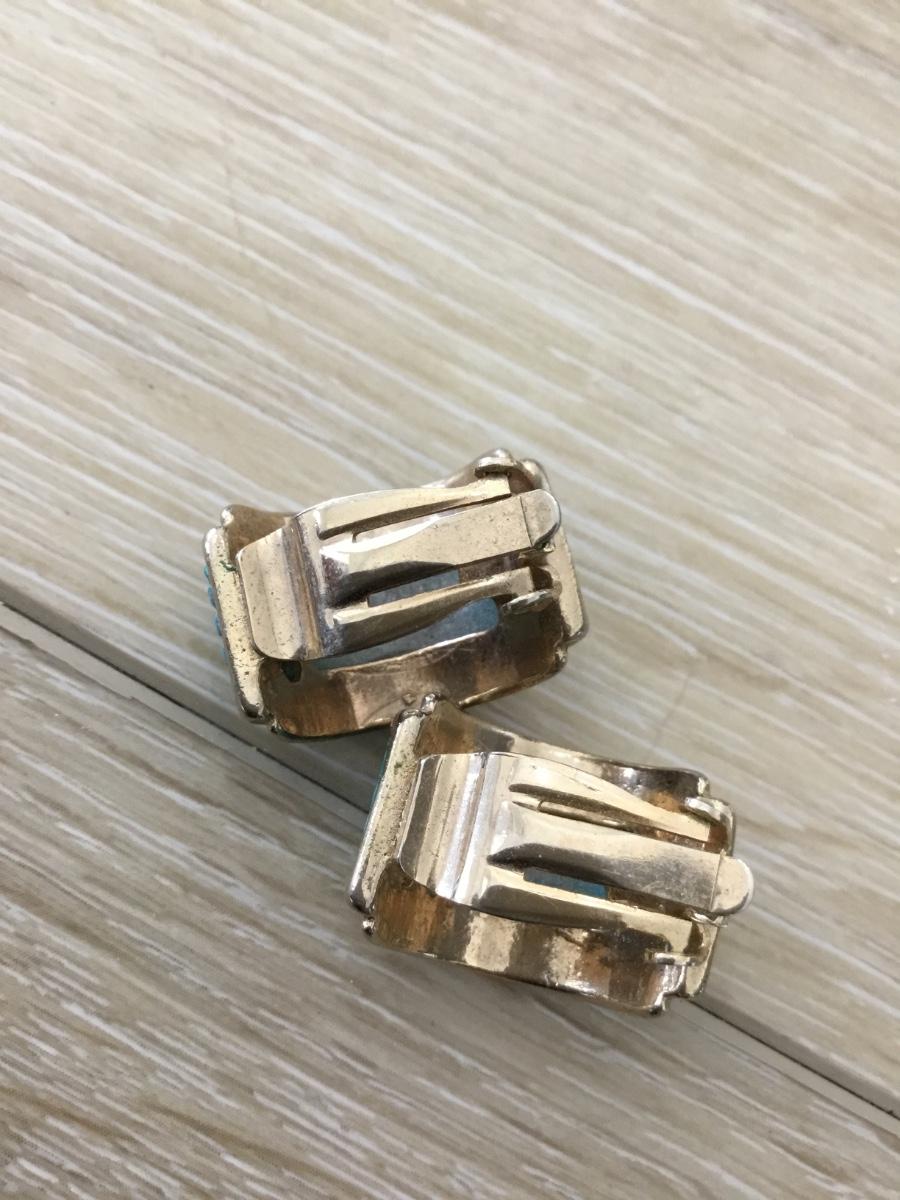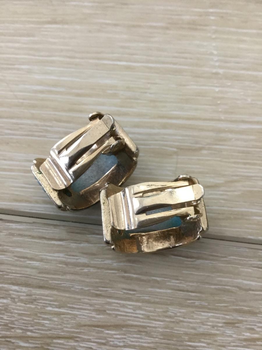 Gold tone green clip on vintage earrings