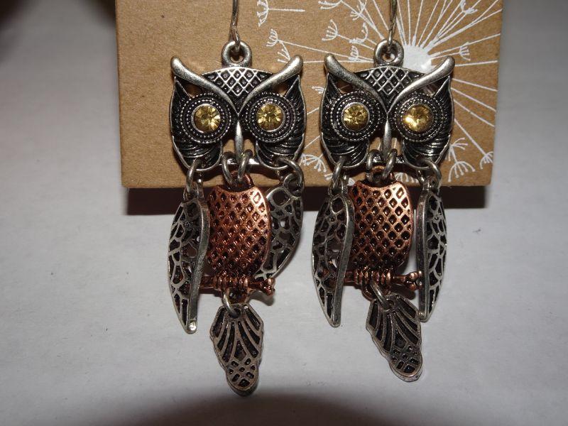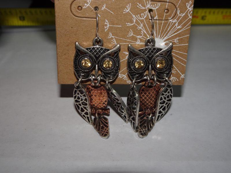 Gold Tone Halloween Hooter Earrings, Dangle Owl Earrings, NWT