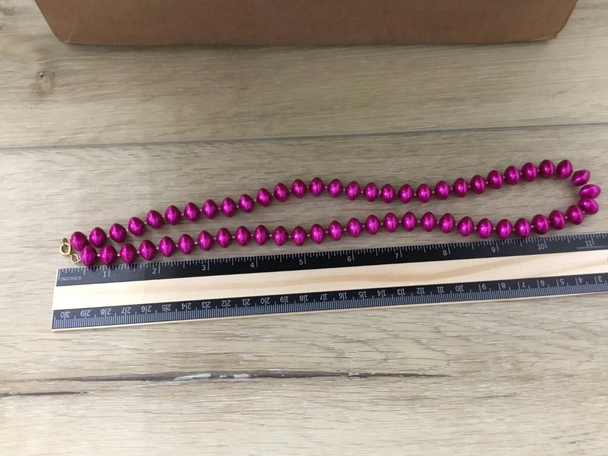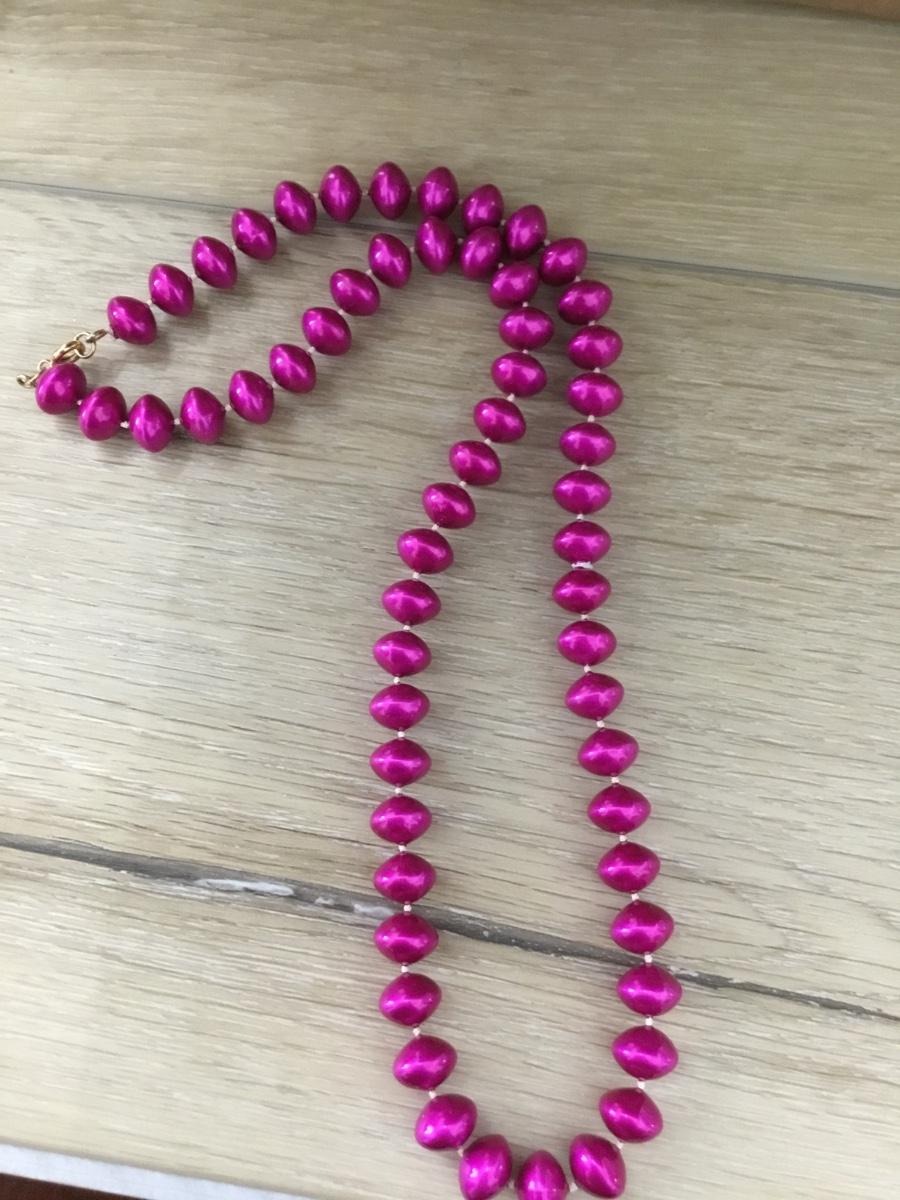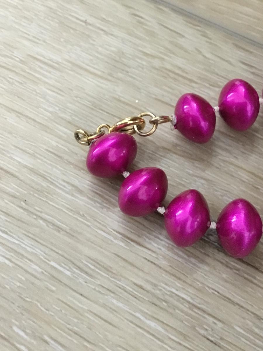 Gold tone hot pink beaded necklace