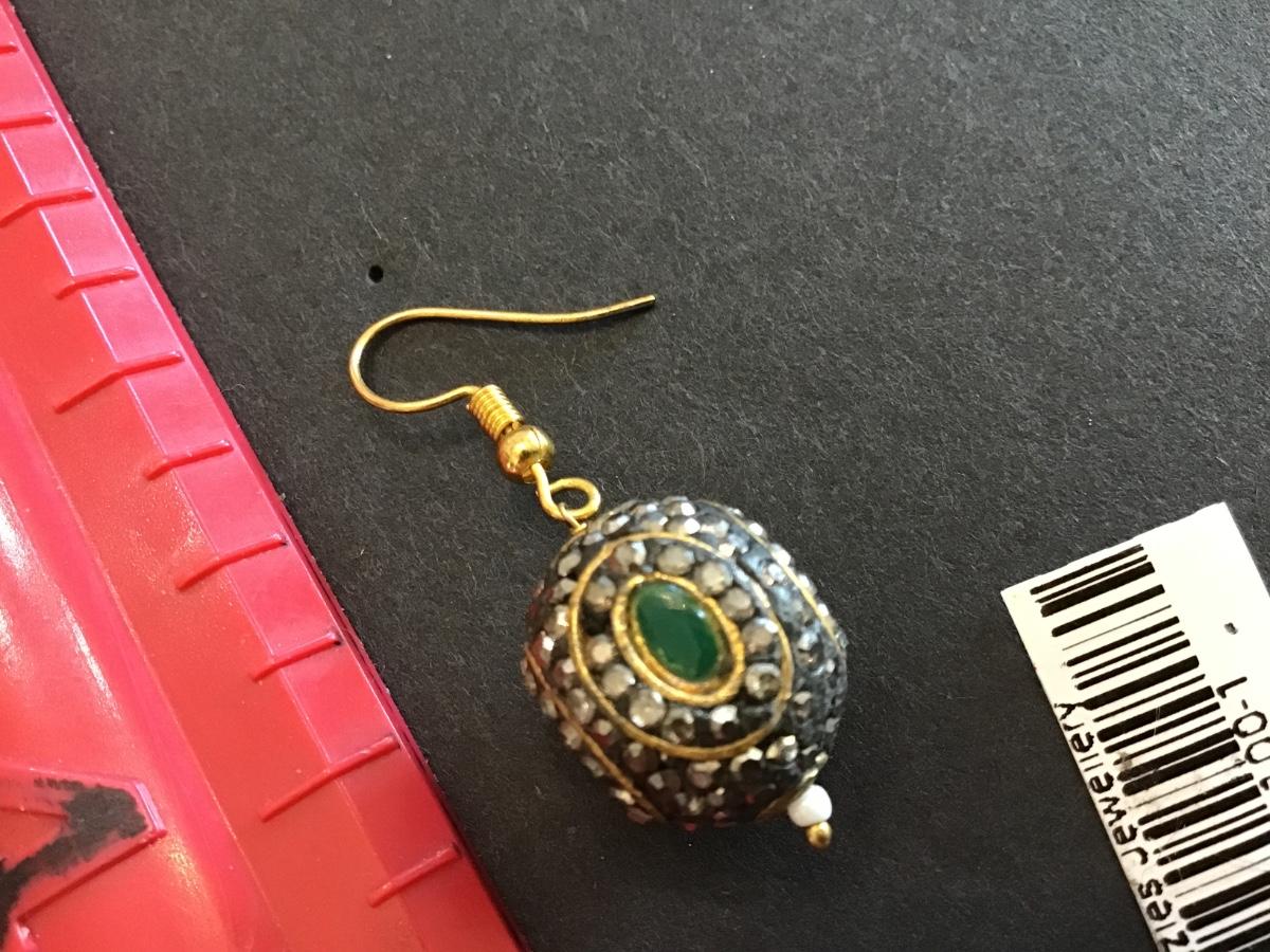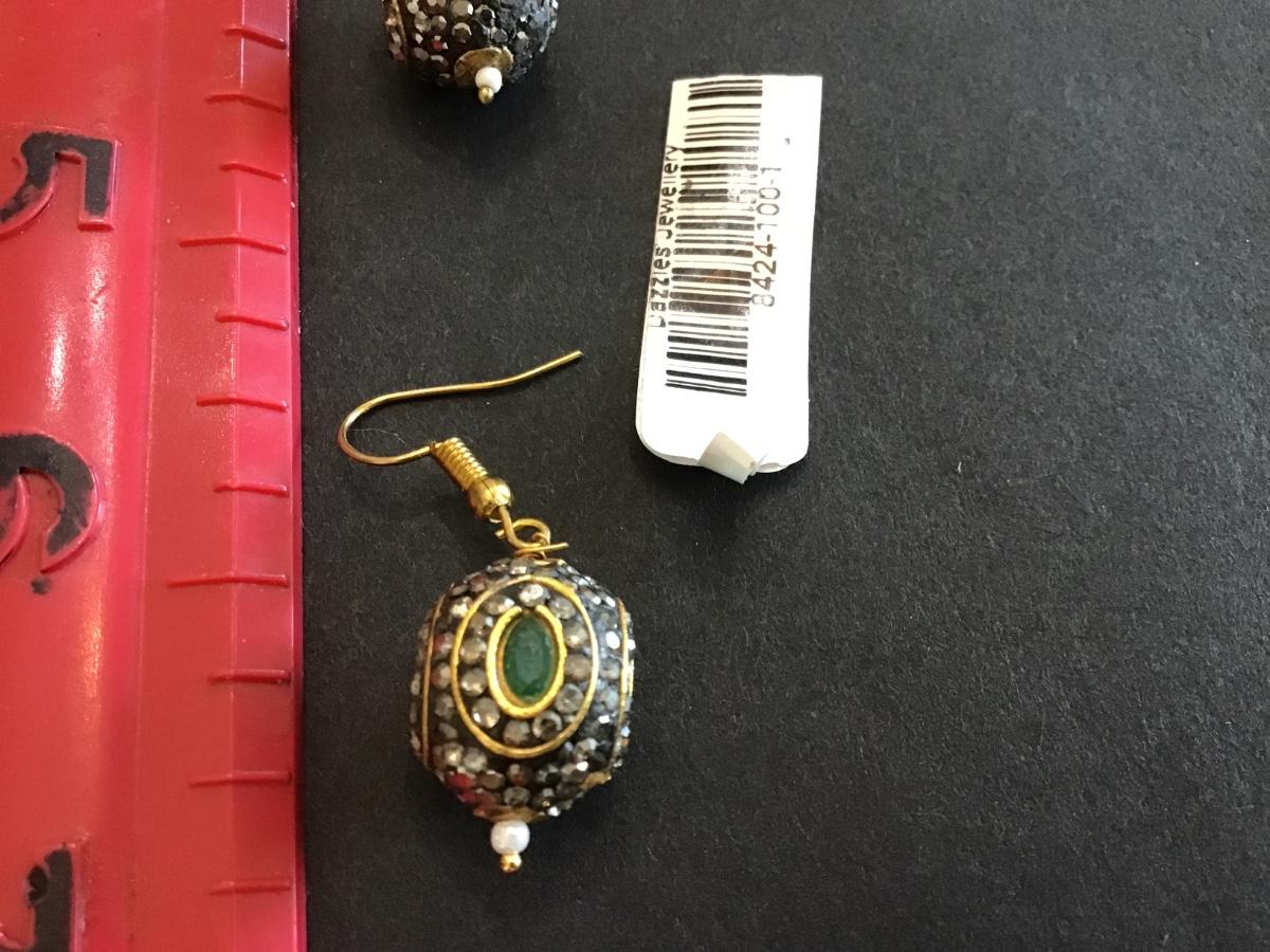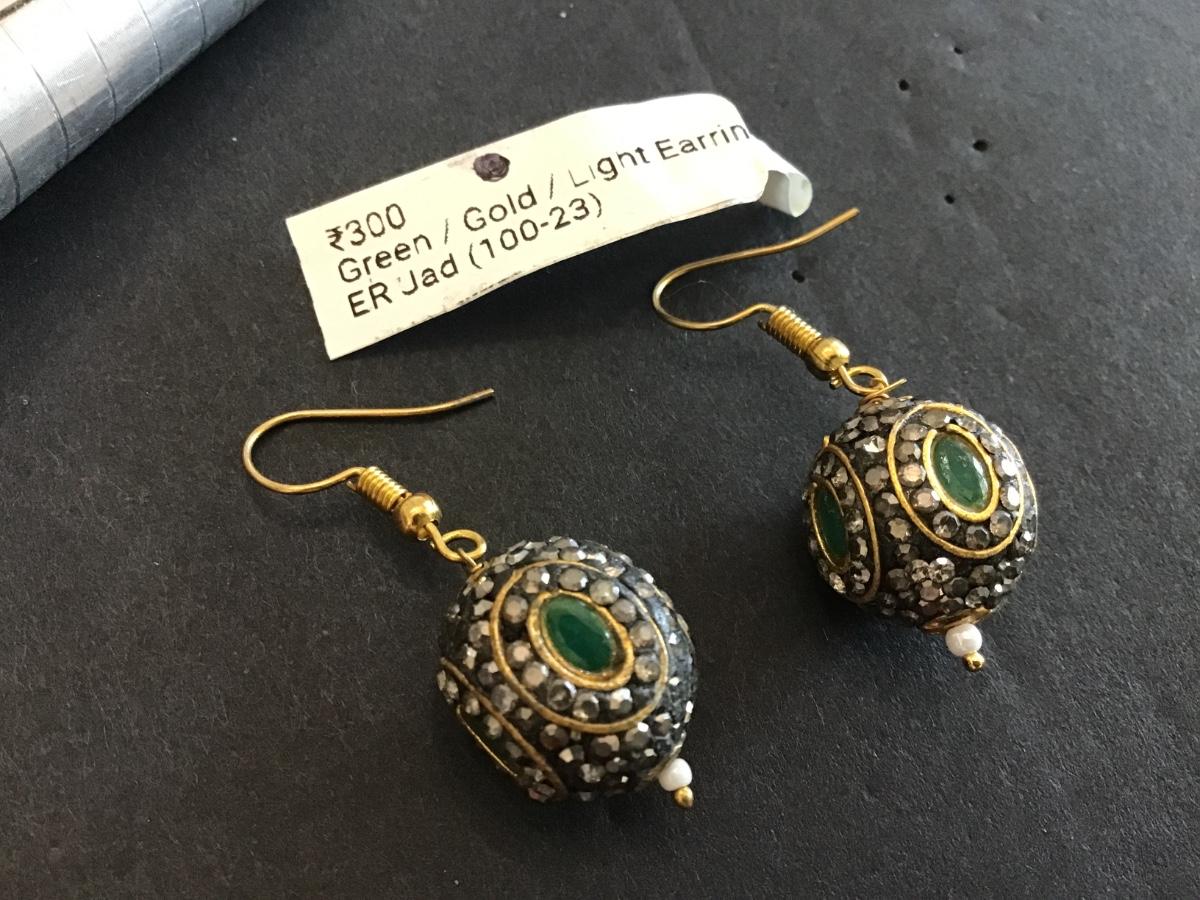 Gold Tone Jade Earrings Ethnic
