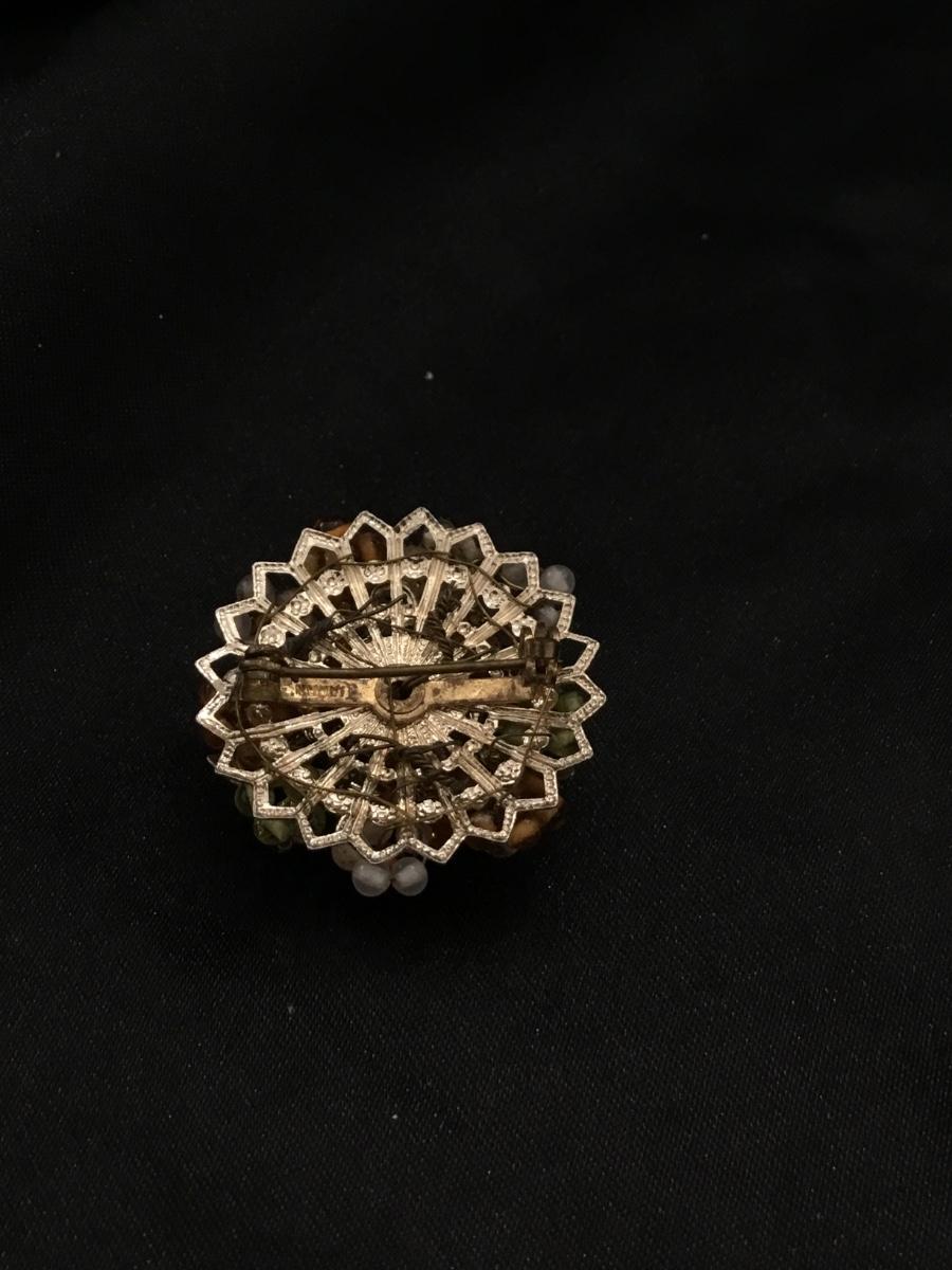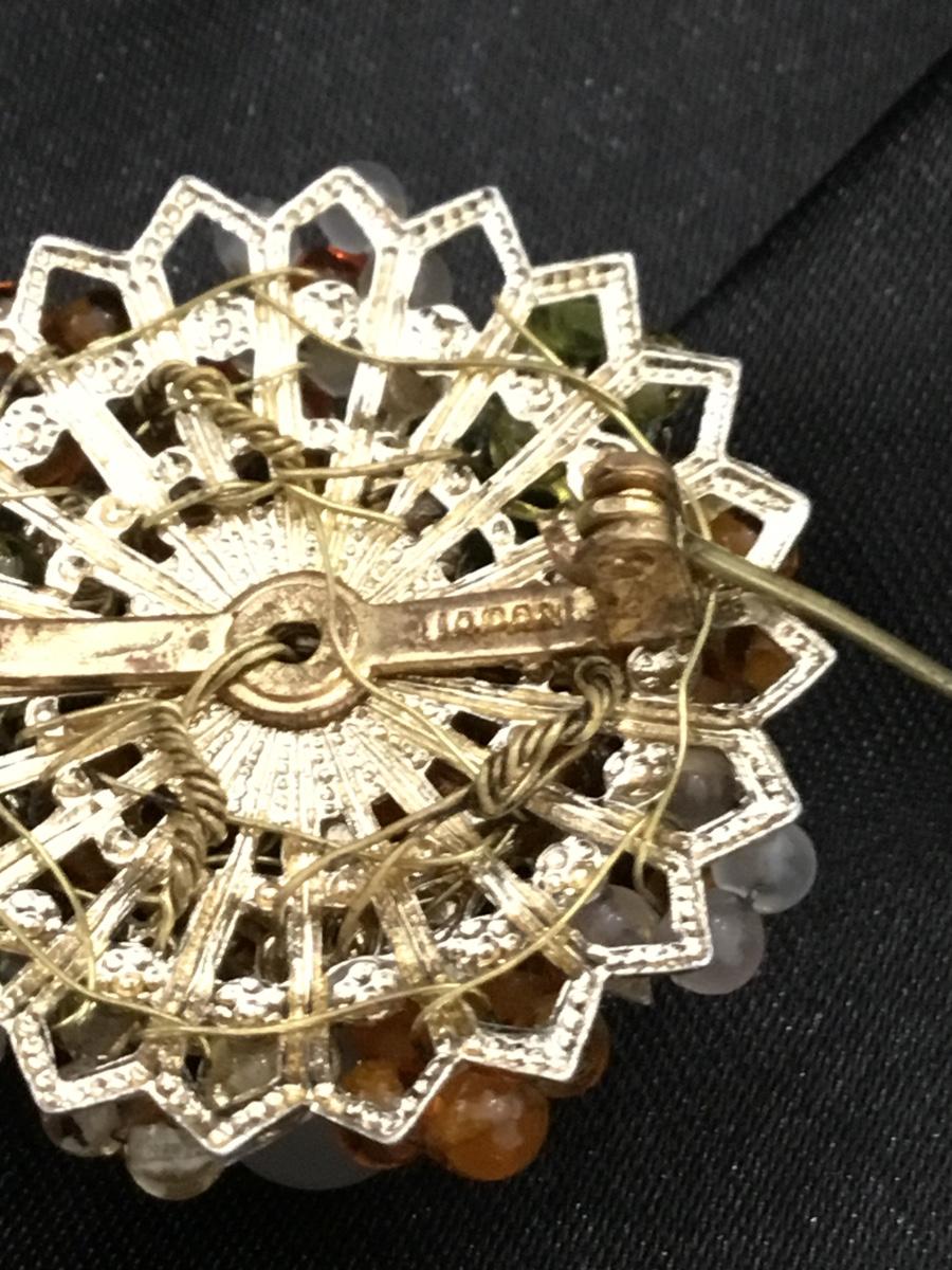 Gold tone Japan marked beaded brooch