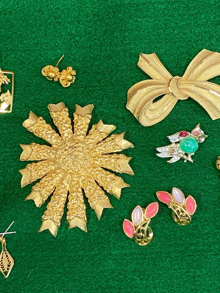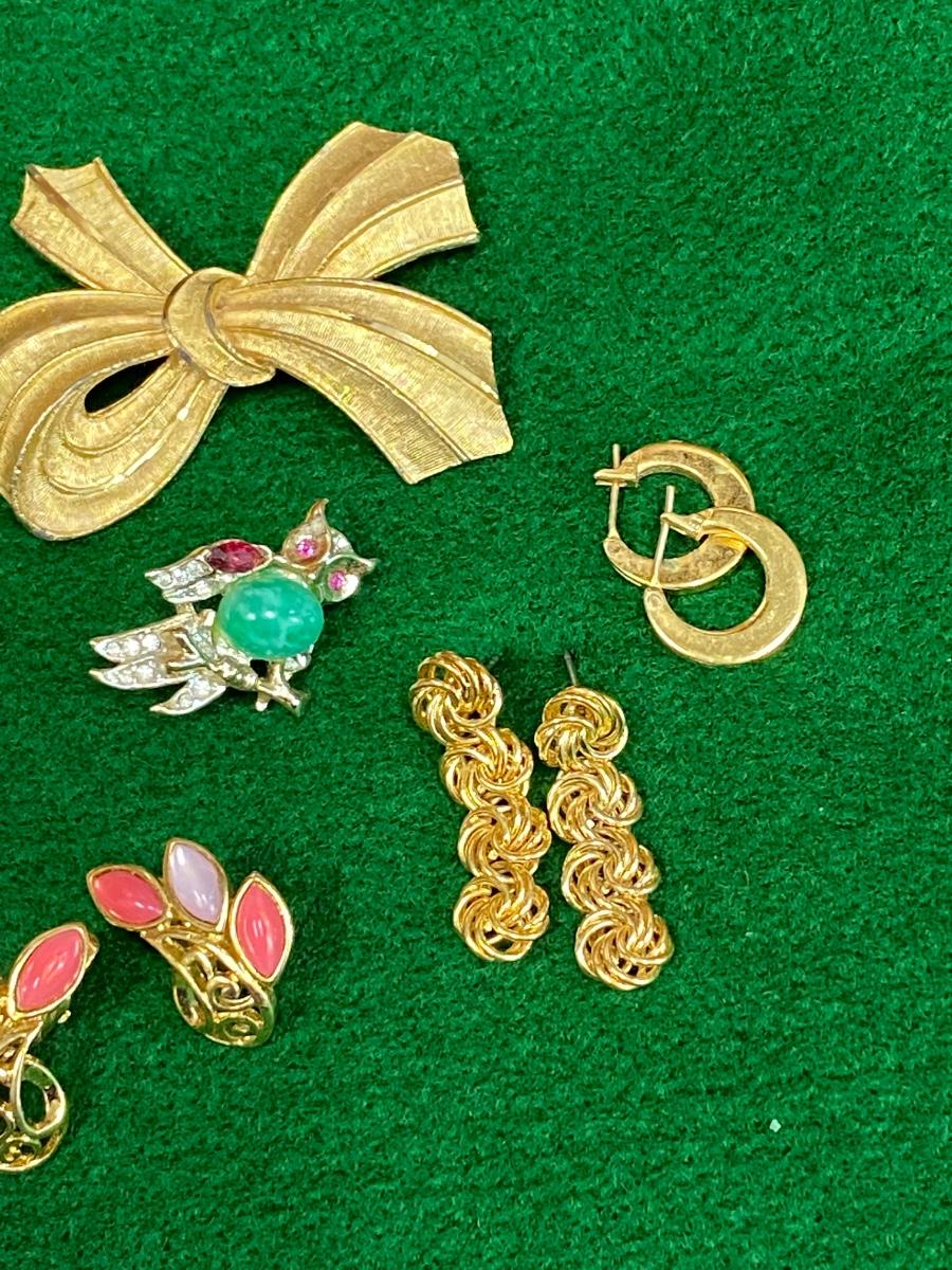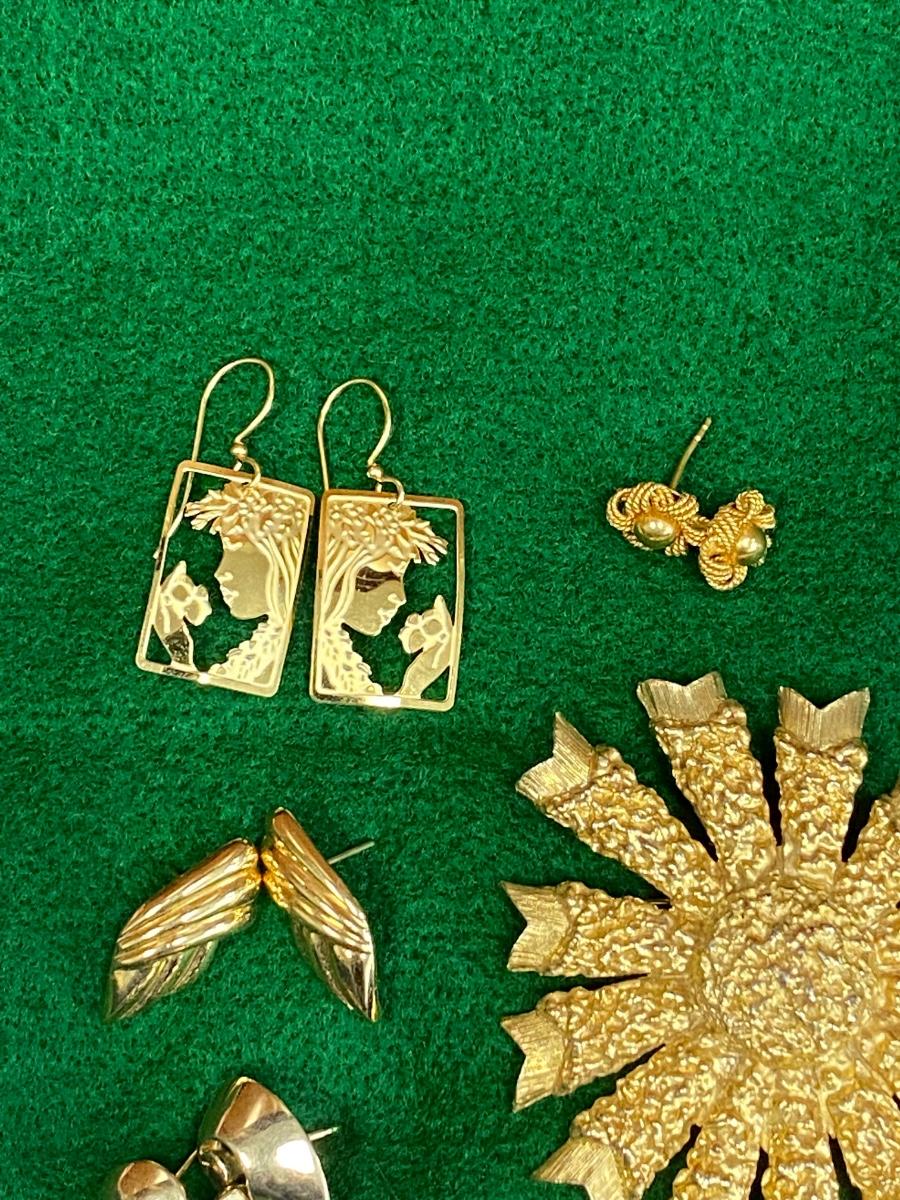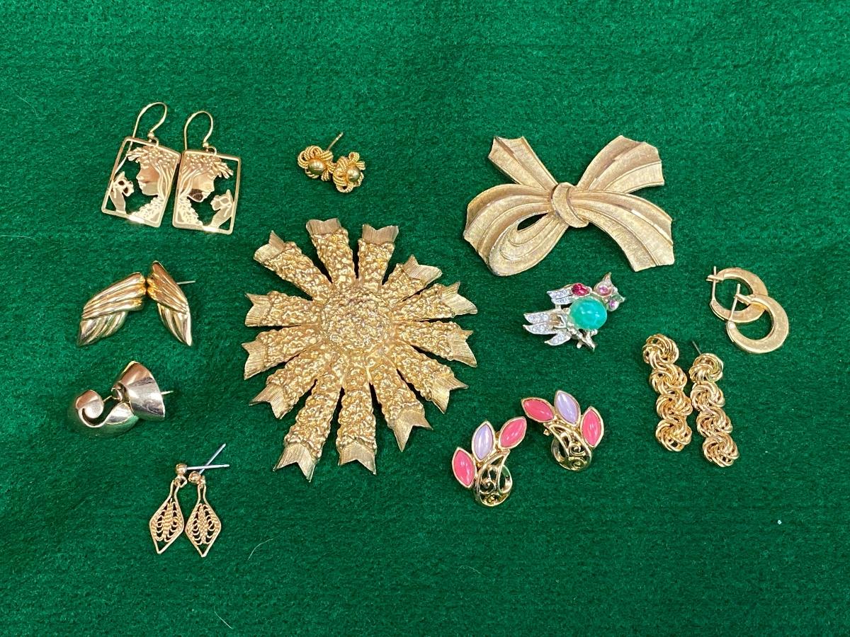 Gold Tone Jewelry Lot Brooches Pin Earrings