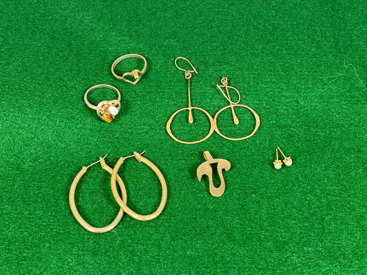 Gold Tone Jewelry Lot Earrings Rings Pendant Charm