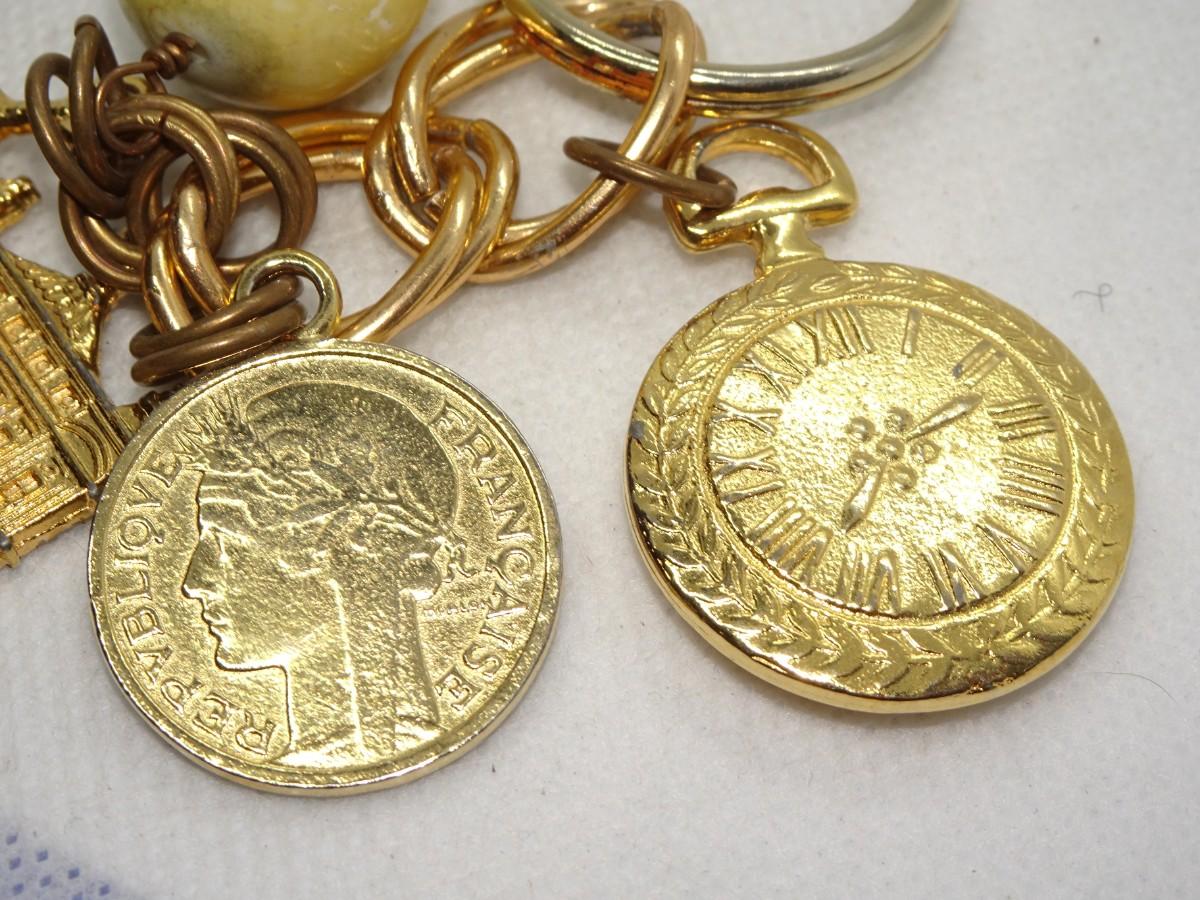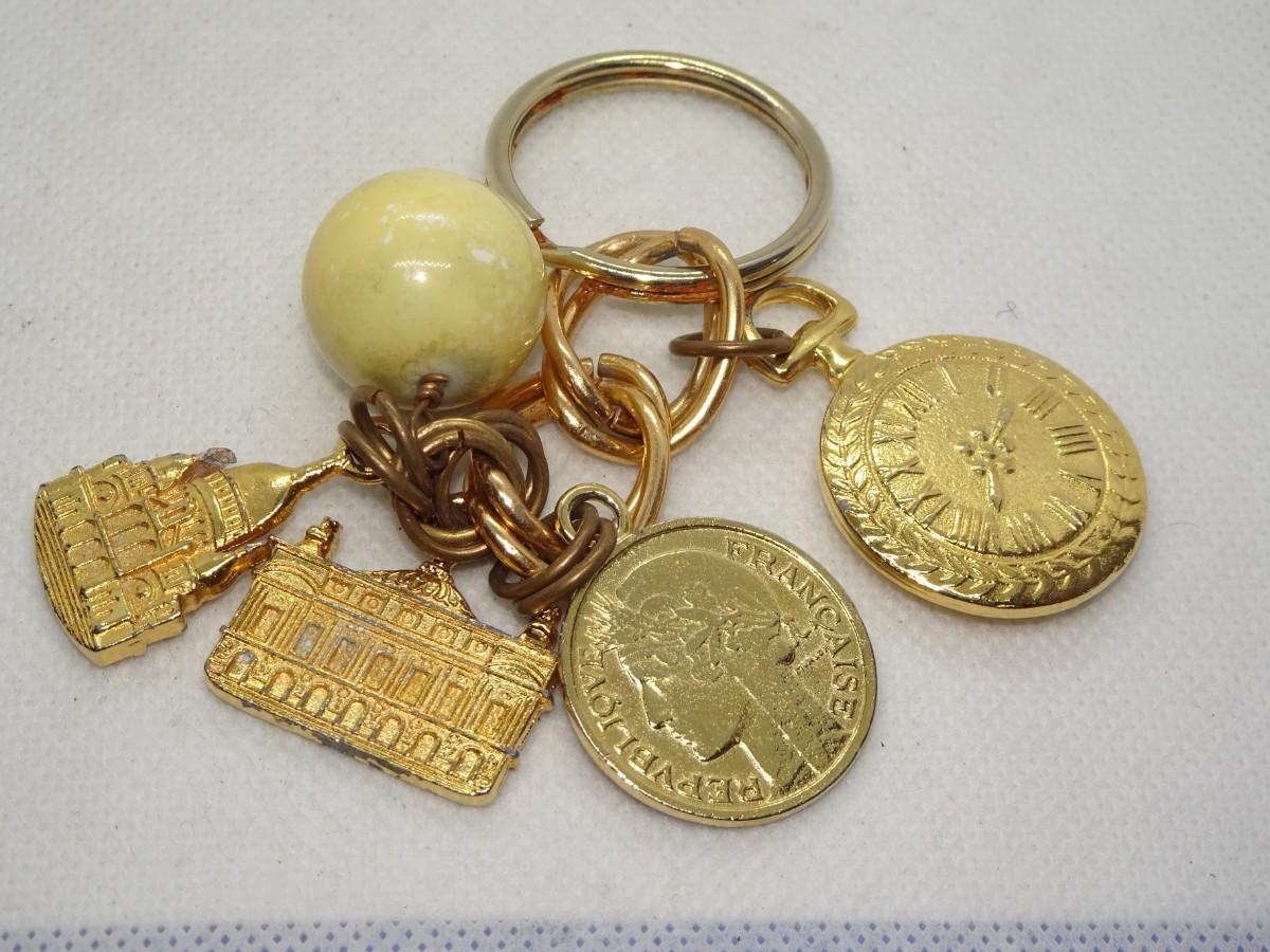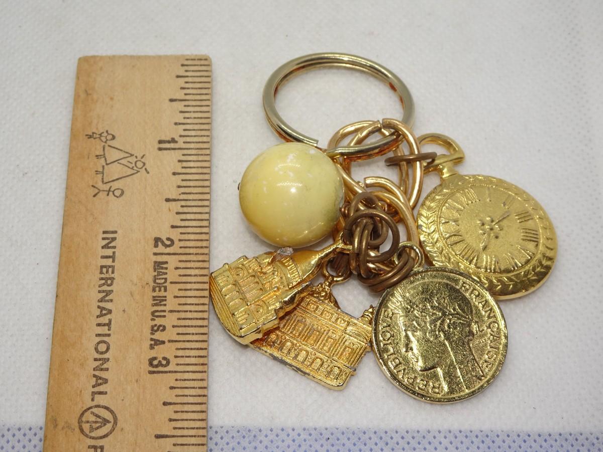 Gold Tone Key Ring Holder, Coin, Clock, Building