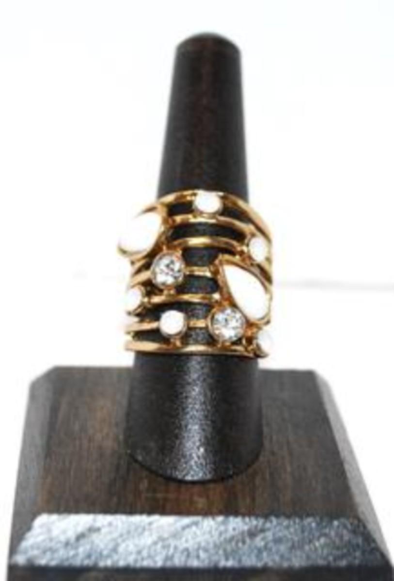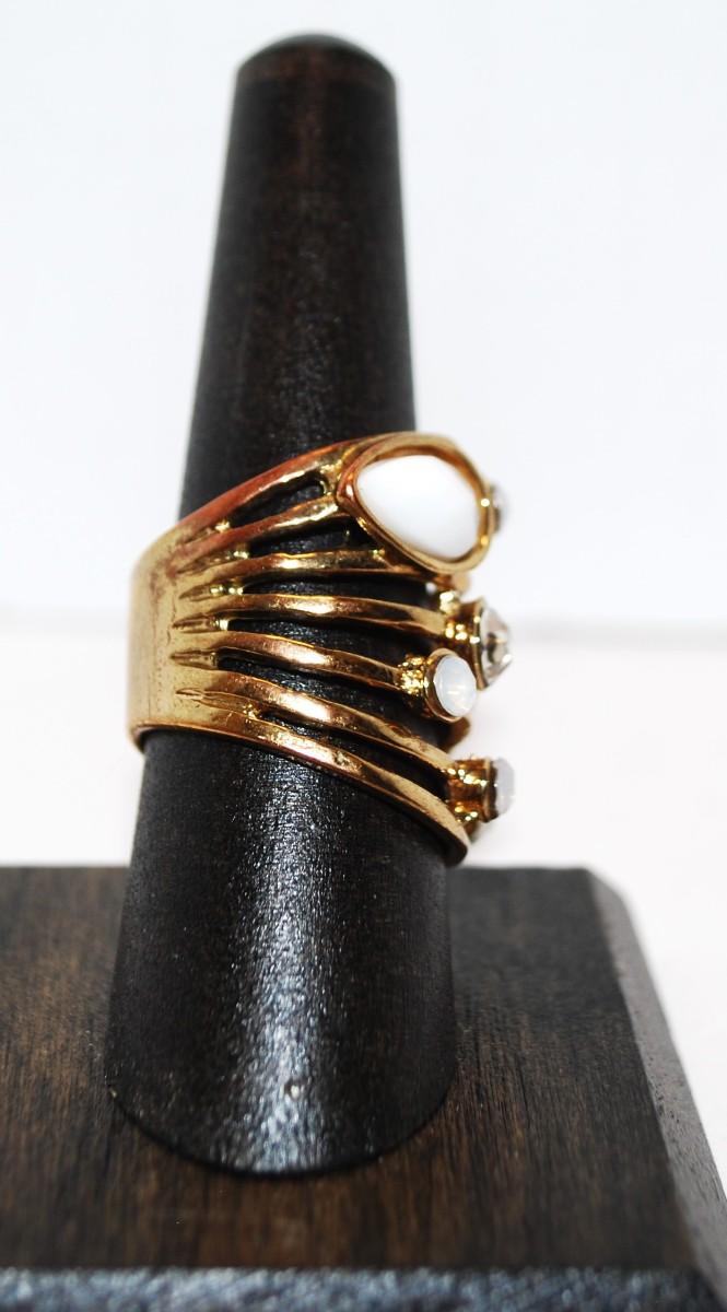 Size 8 Gold Tone "Ladder" Ring with Opaque & Clear Stone Assortment (7.6g)