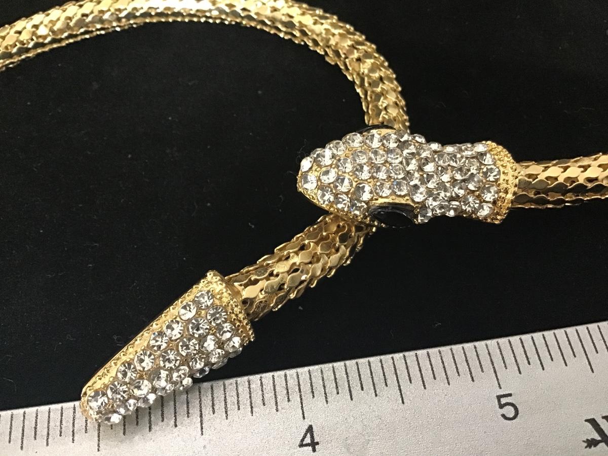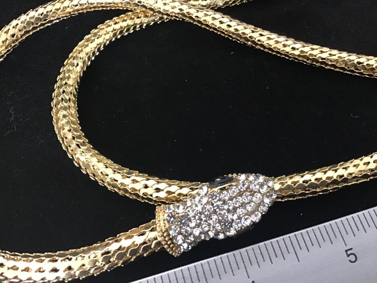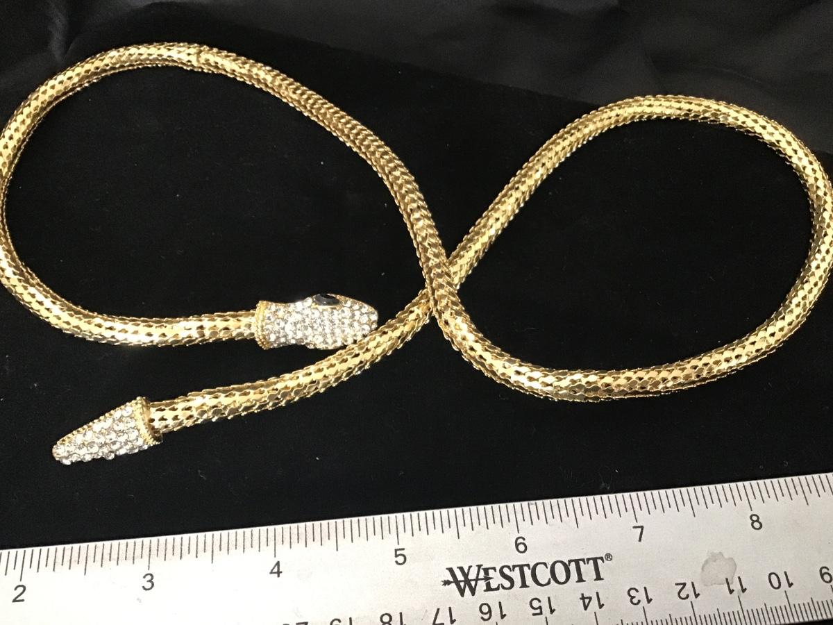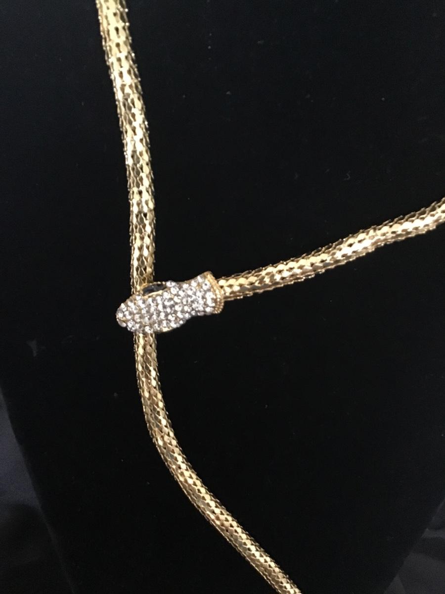 Gold Tone Lariat Style Snake Necklace Magnetic Adjustable Length