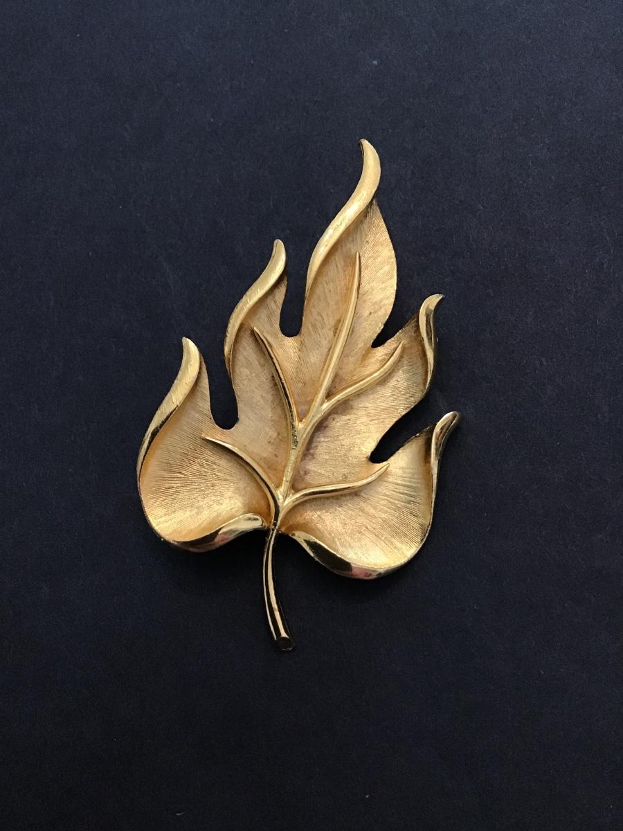 Gold tone leaf brooch
