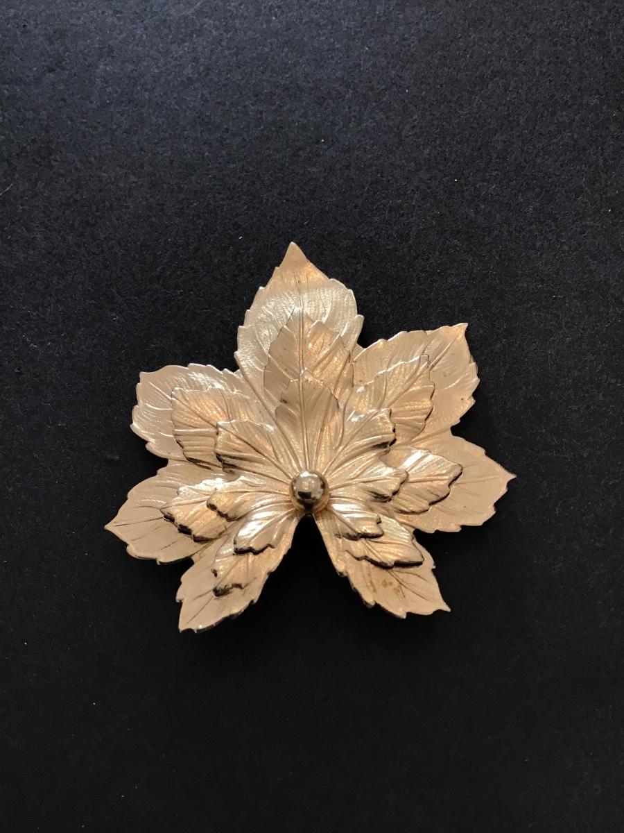 Gold tone leaf brooch pin
