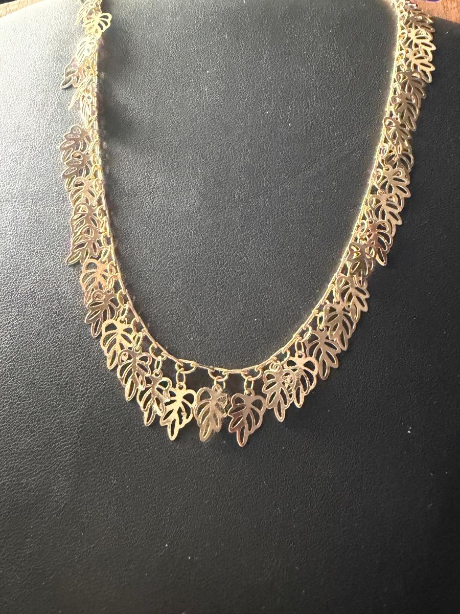 Gold tone leaf fashion necklace