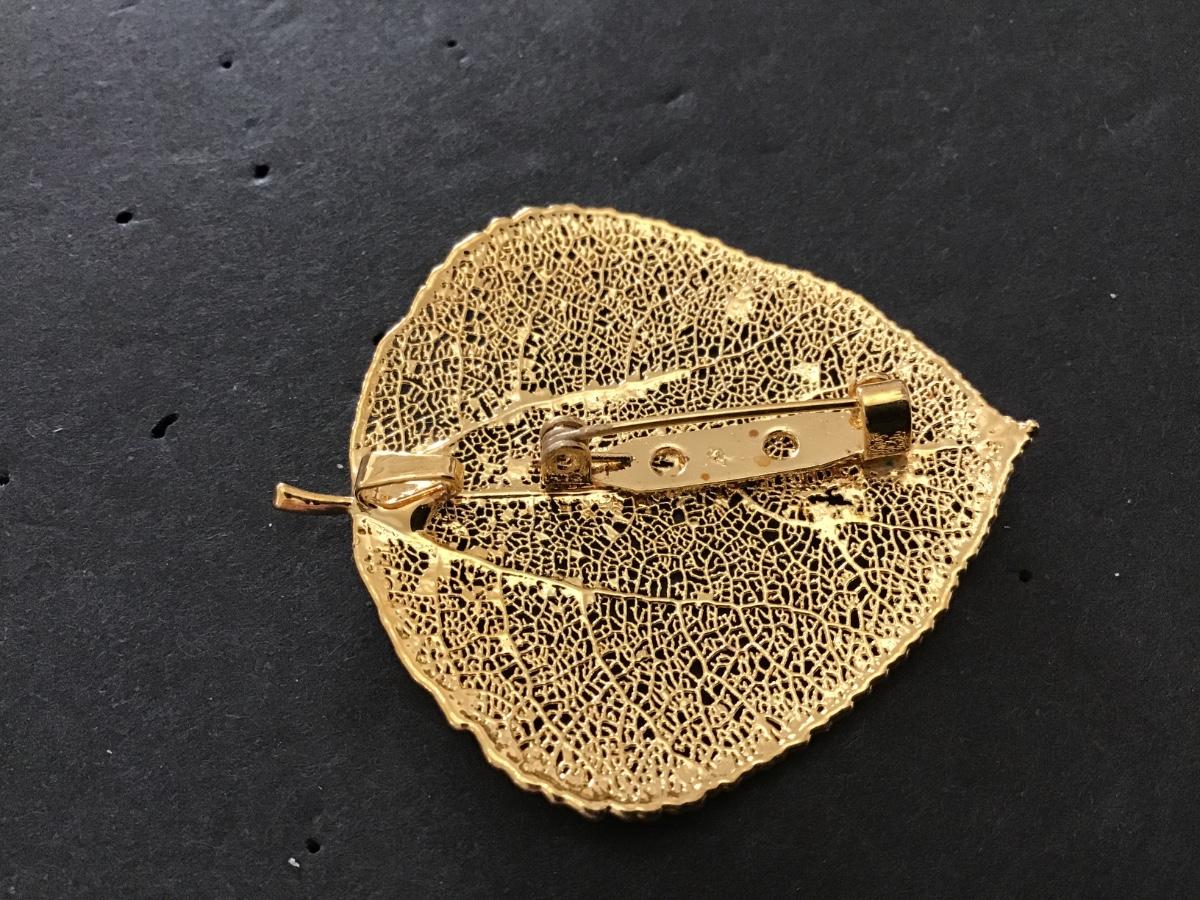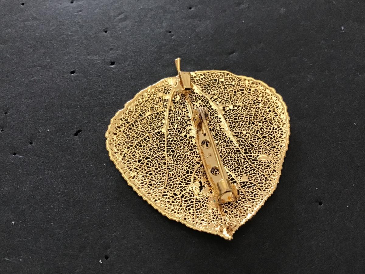 Gold. Tone Leaf Pendant/ Brooch