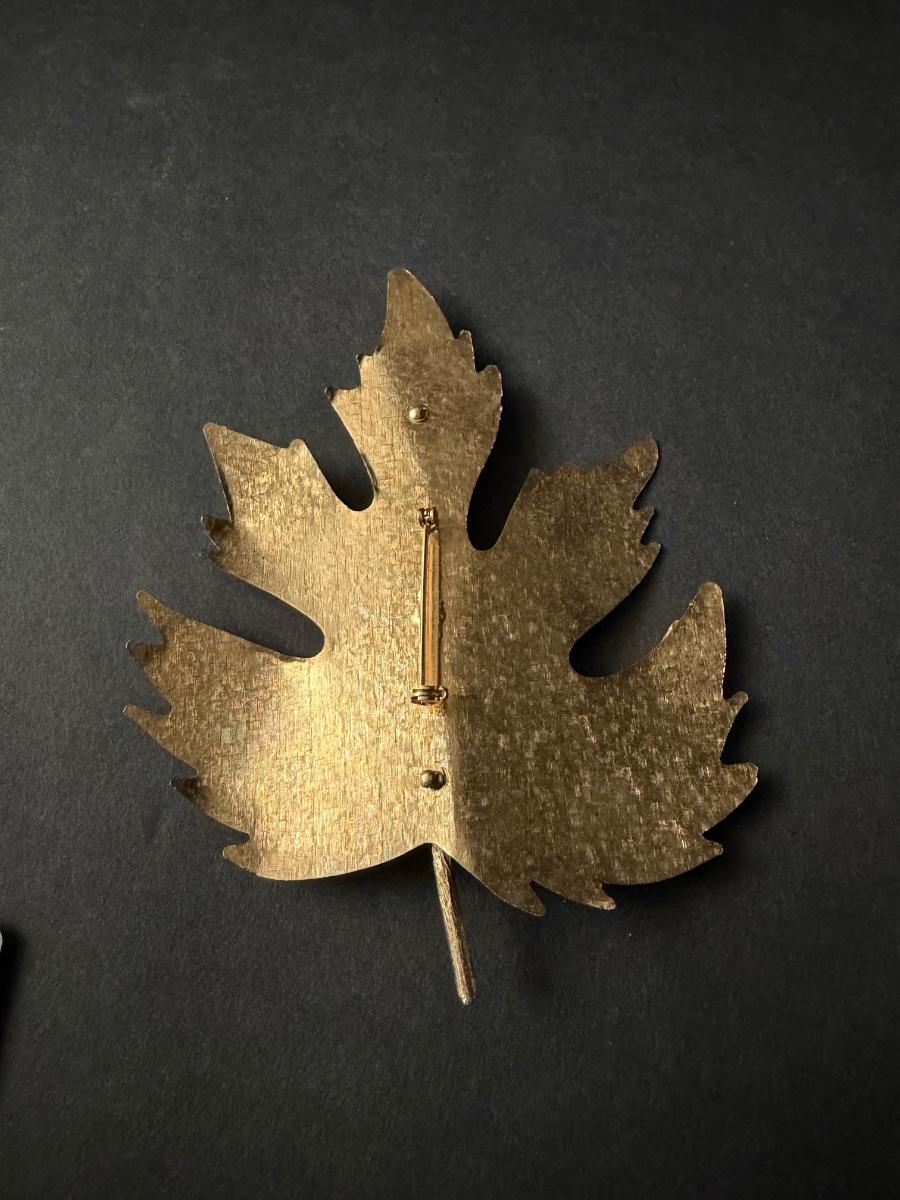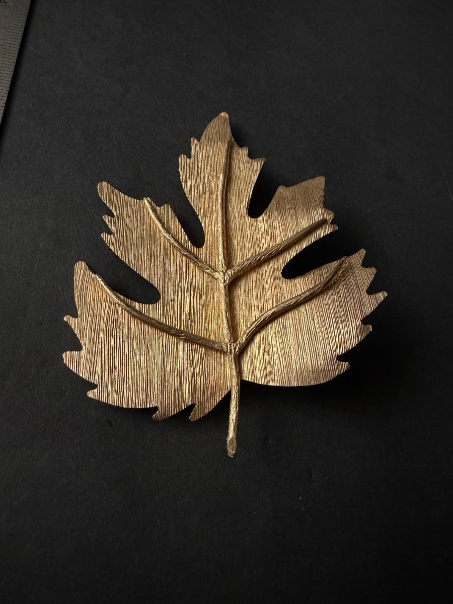 Gold tone leaf statement brooch