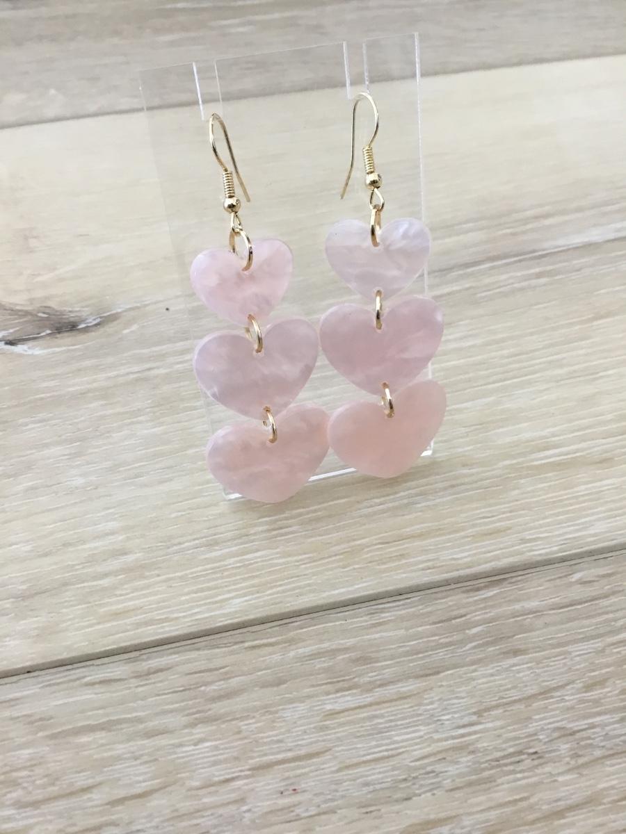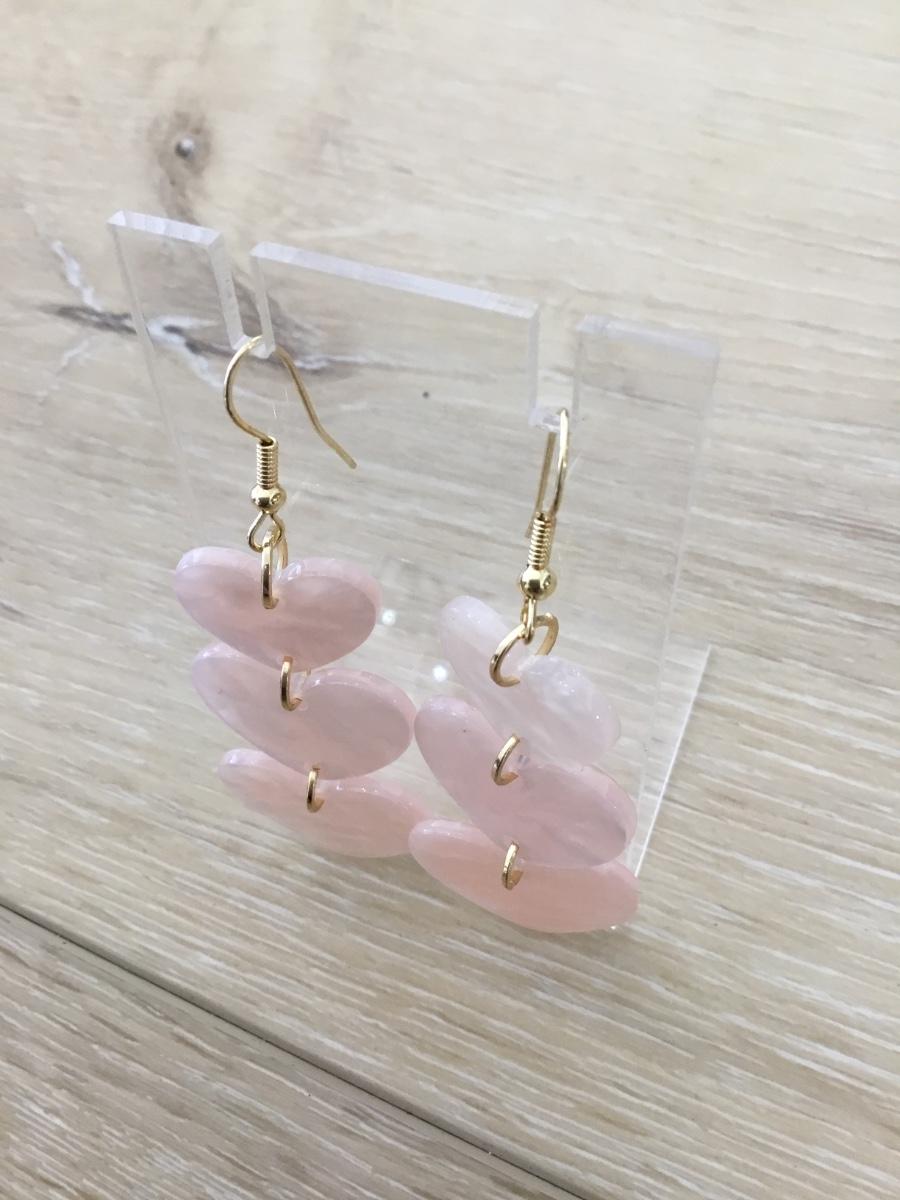 Gold tone light pink heart earrings