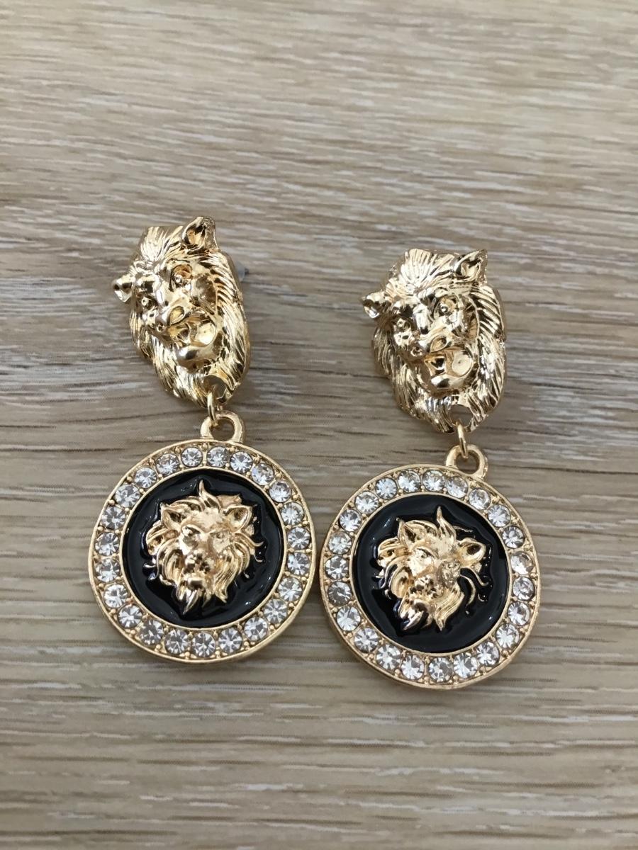 Gold tone lion earrings
