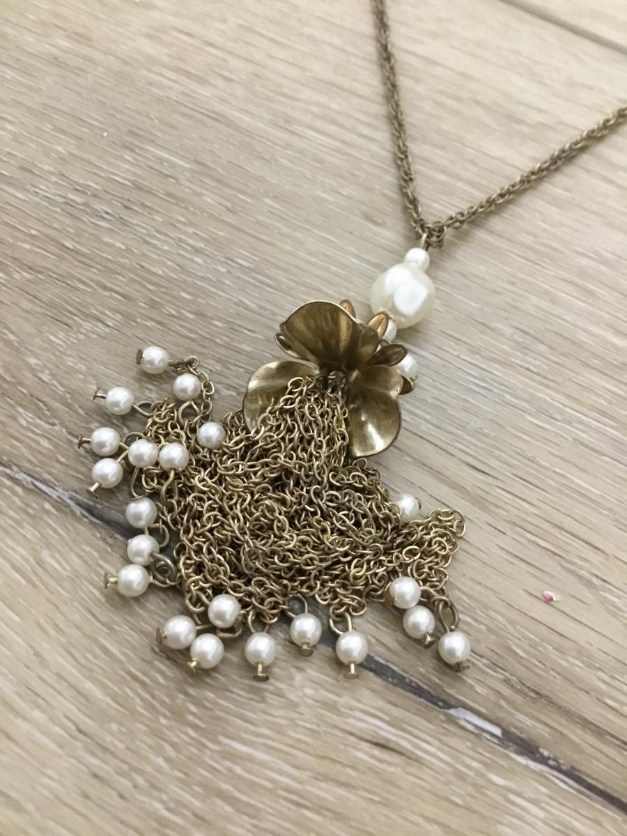 Gold tone long Loft marked tassels necklace