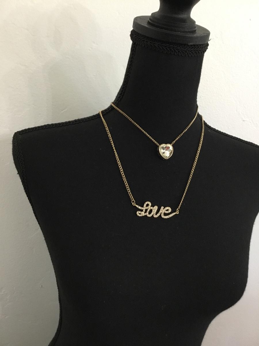 Gold tone love rhinestone necklace