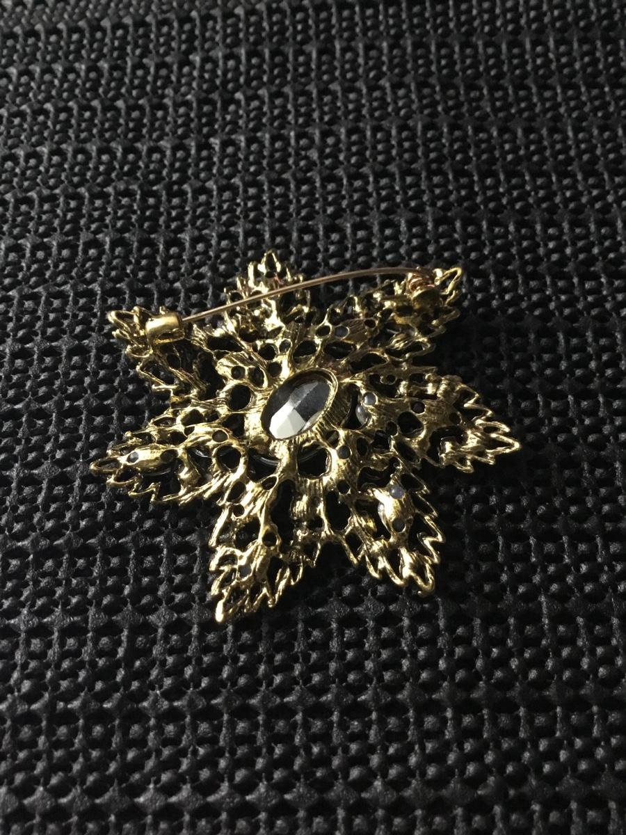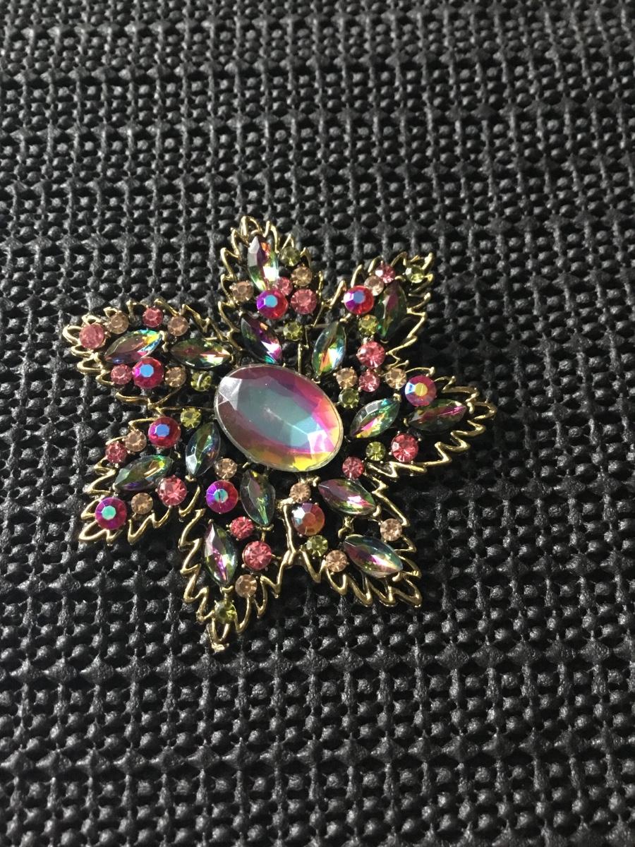 Gold tone metal flower brooch pin colorful rhinestones