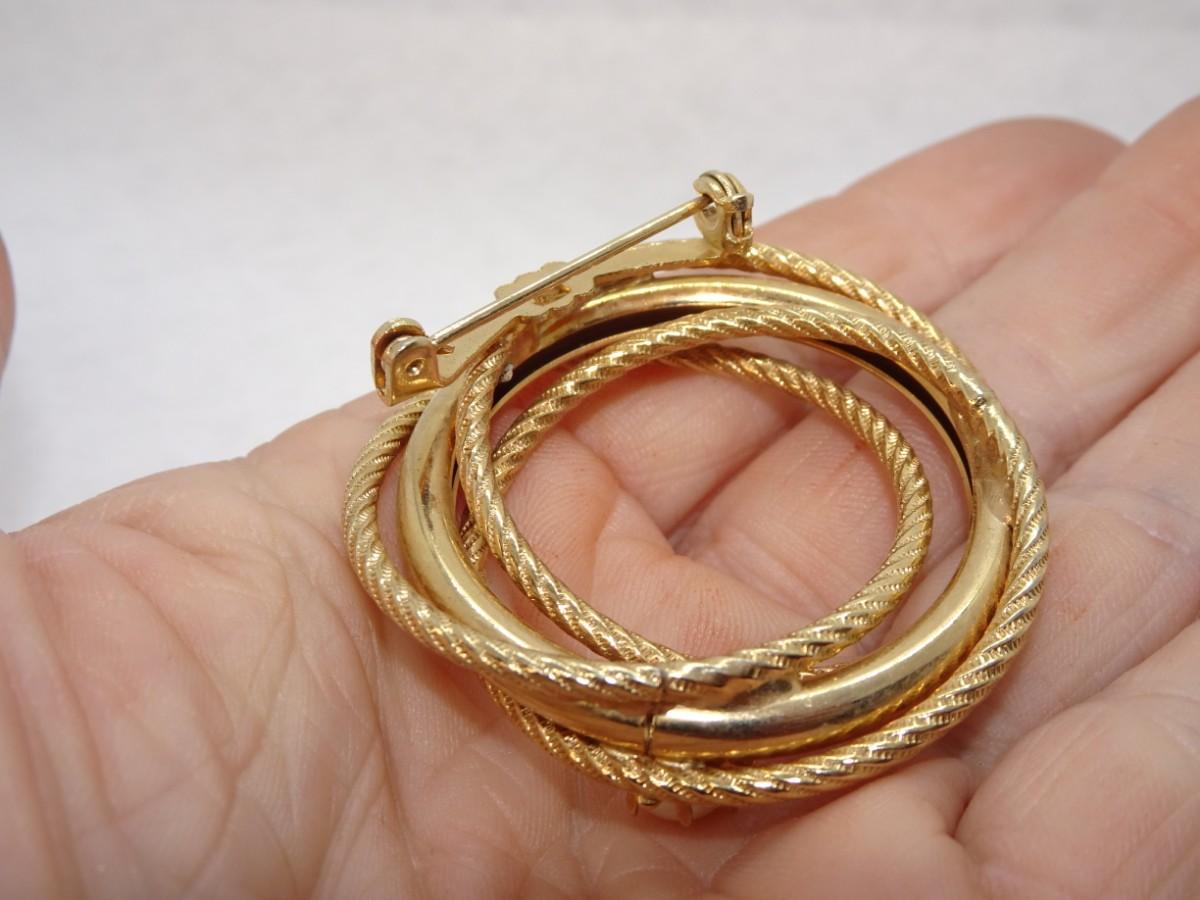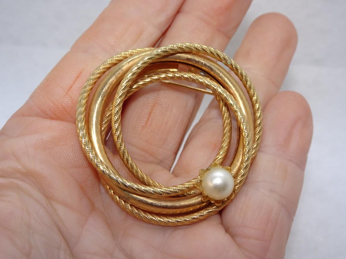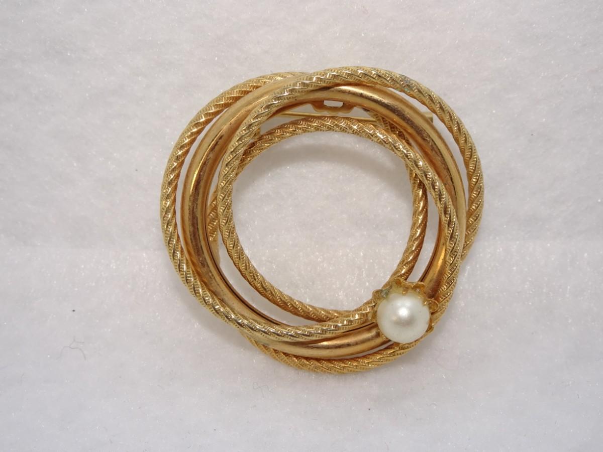 Gold Tone Mid Century Ovals & Pearl Brooch