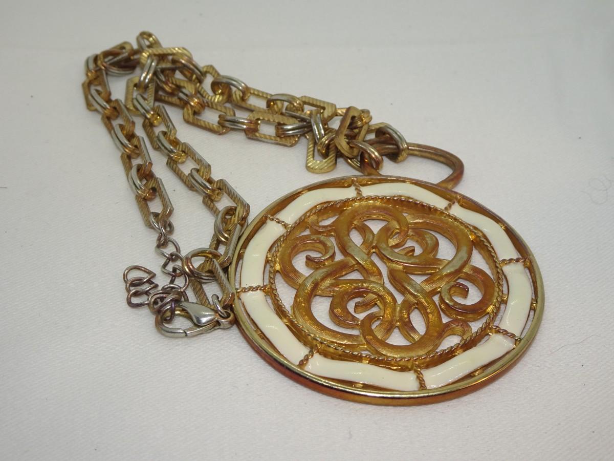 Gold Tone Mid Century Pendant Necklace