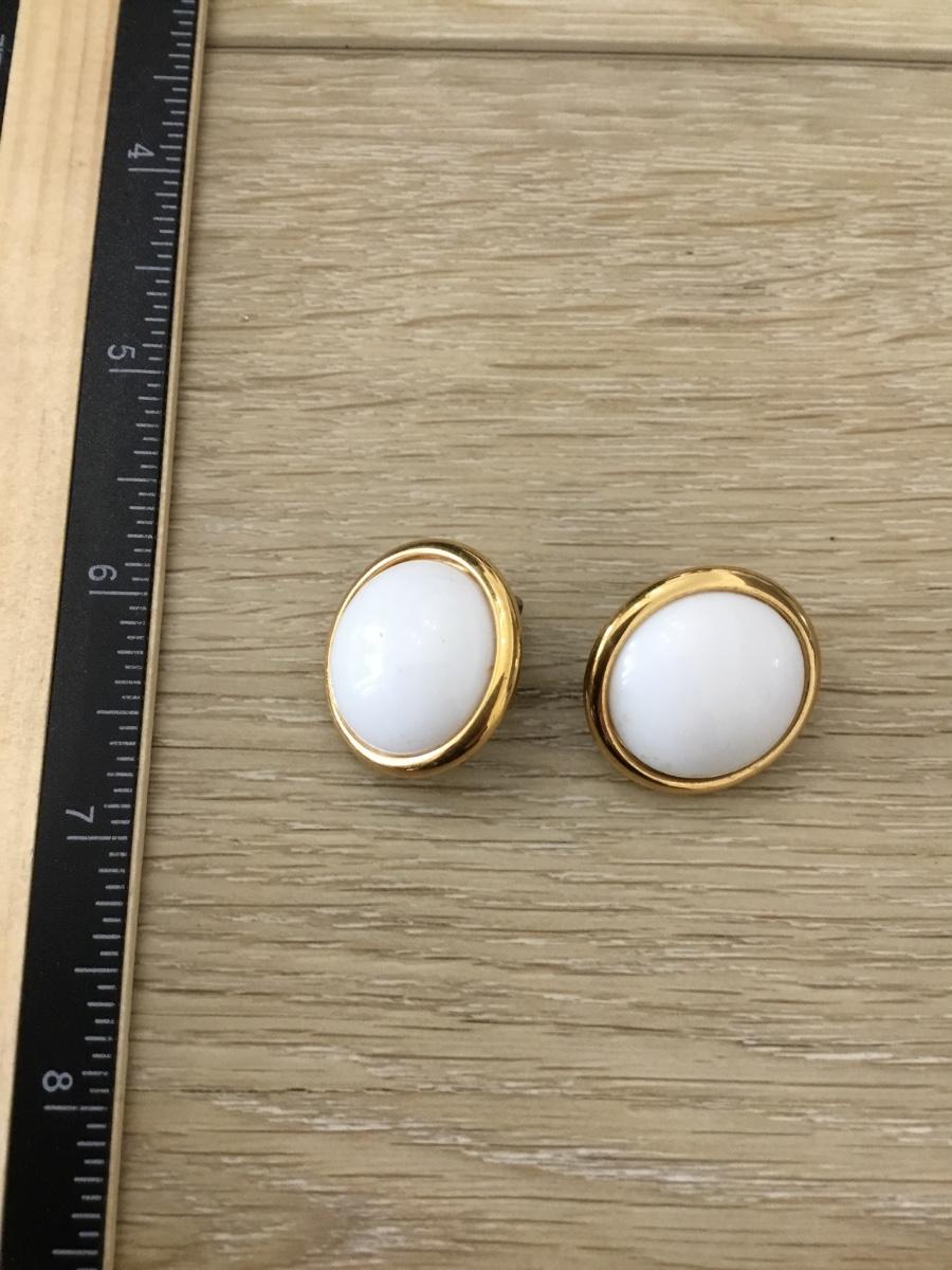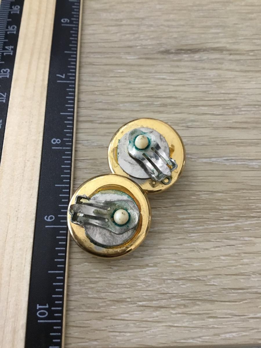 Gold tone milk glass vintage clip on earrings