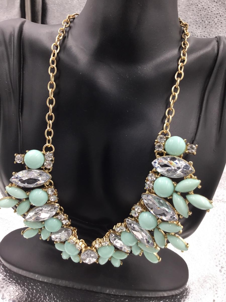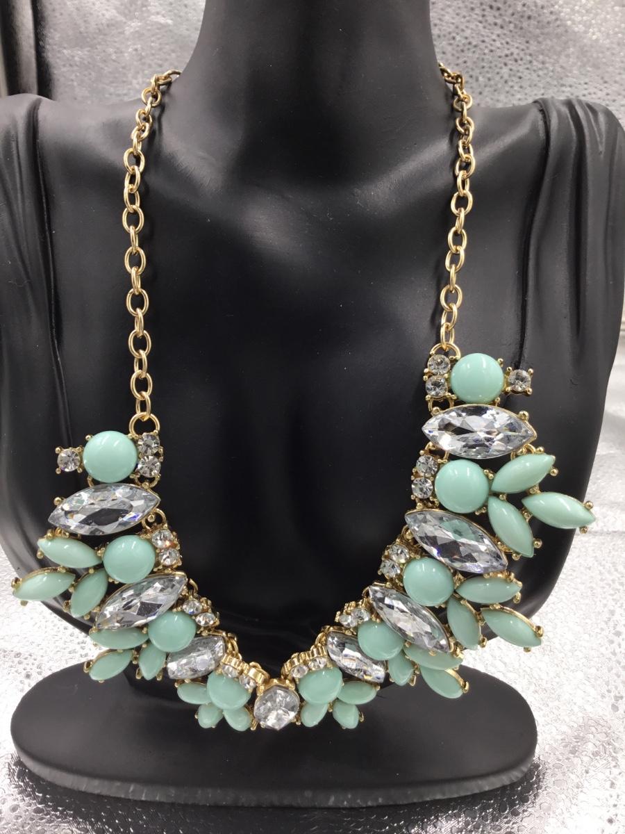 Gold tone mint rhinestones statement necklace