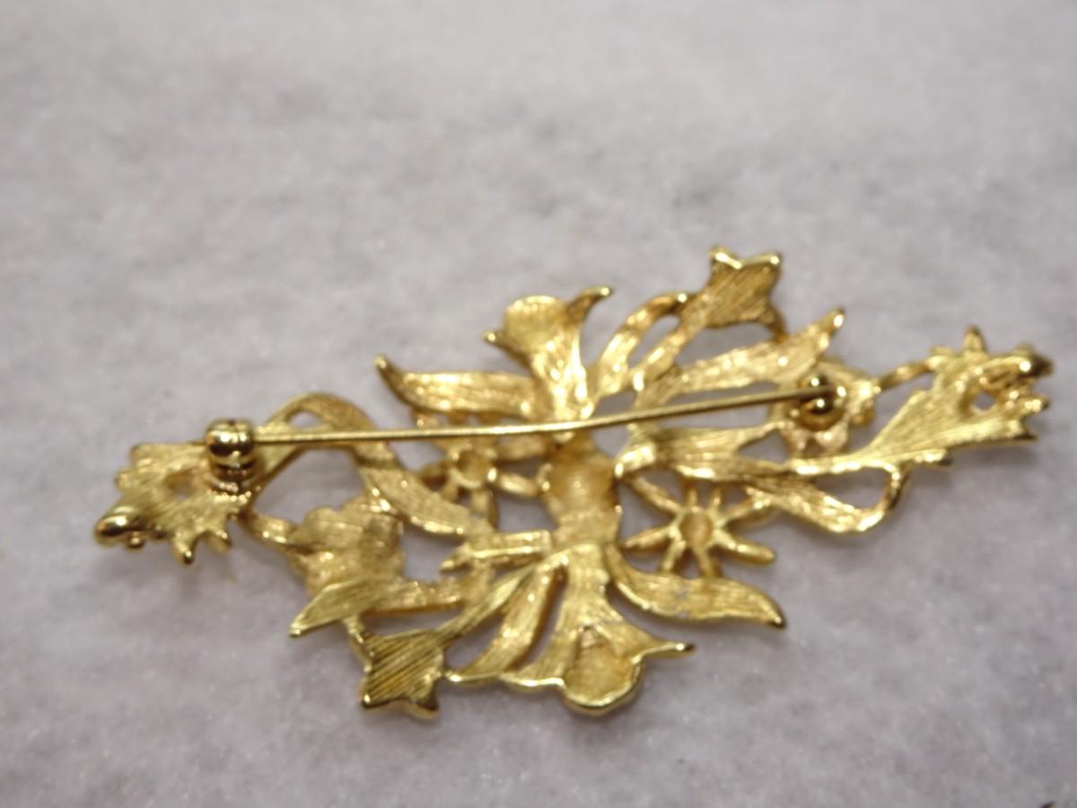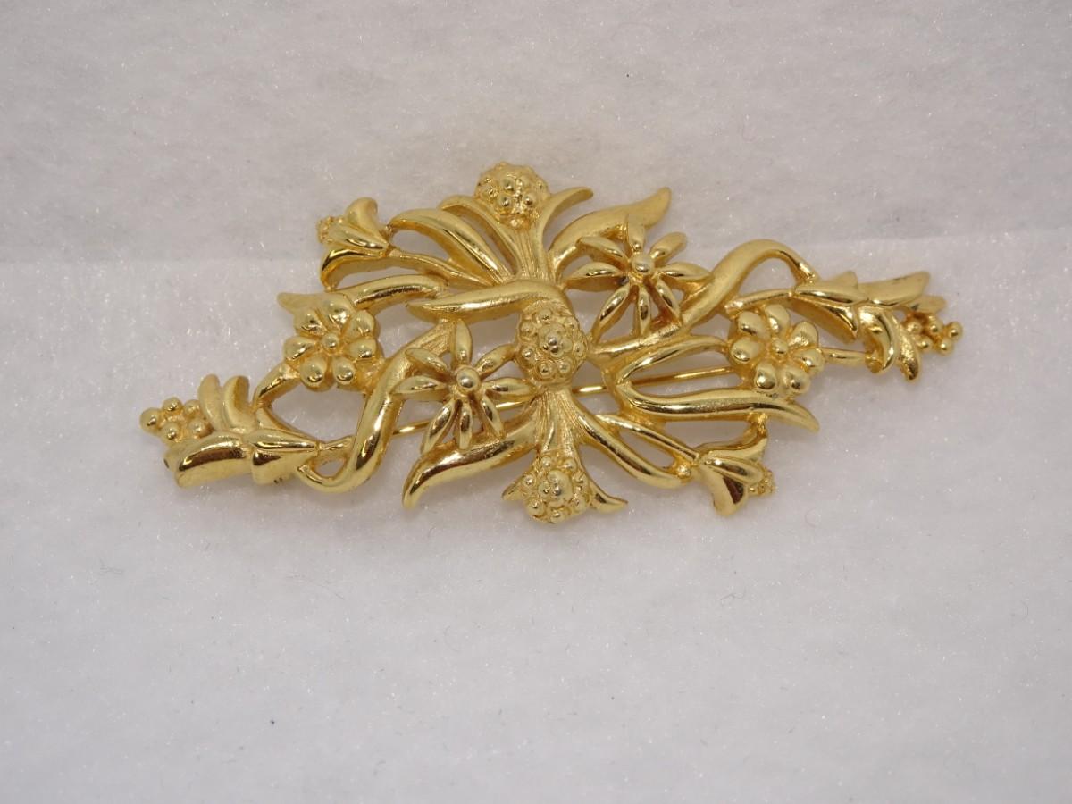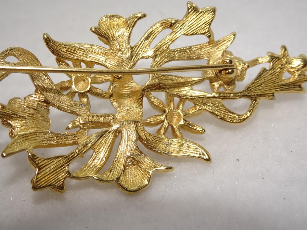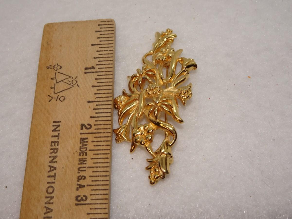 Gold Tone Monet Floral / Vine Brooch