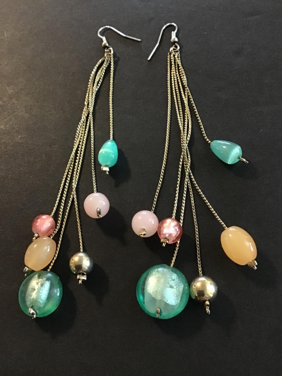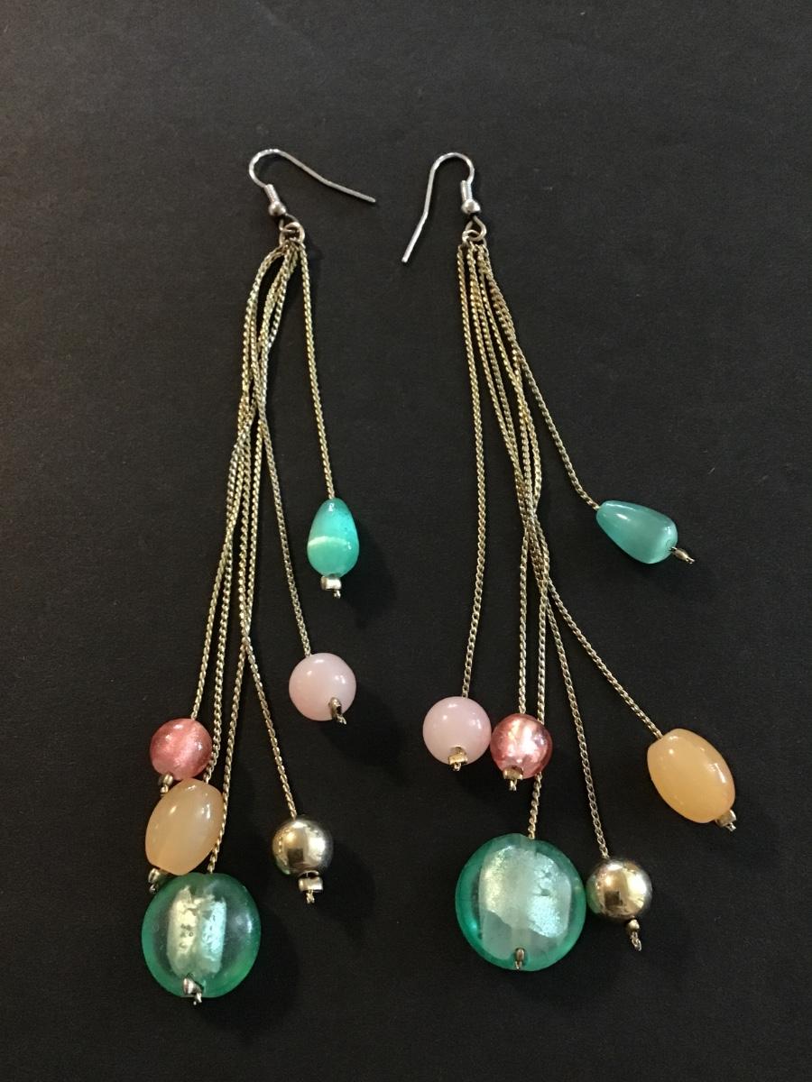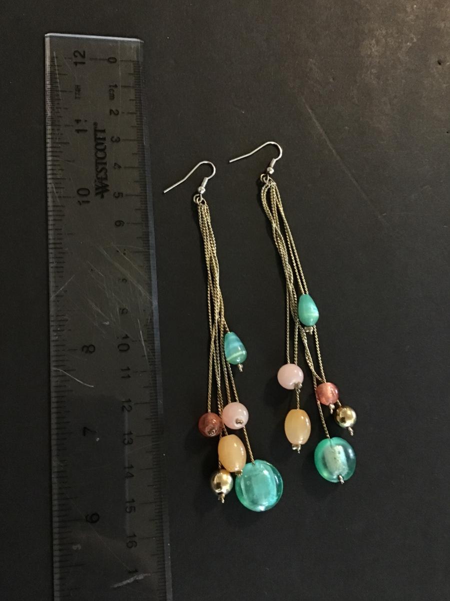 Gold tone multicolored glass bead dangle earrings