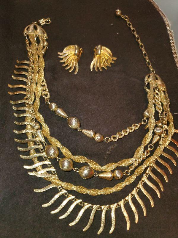 Gold Tone Necklace and Earrings