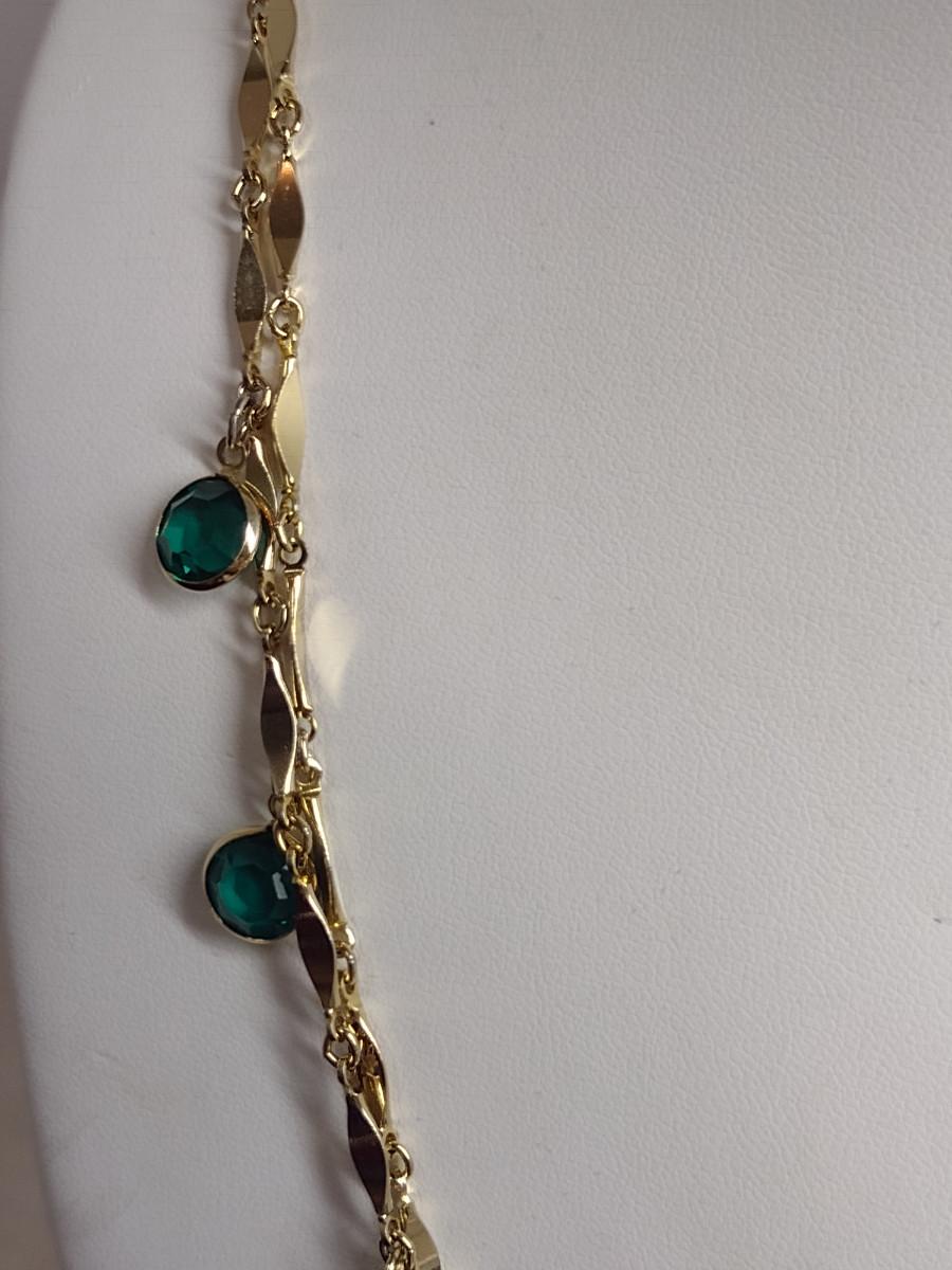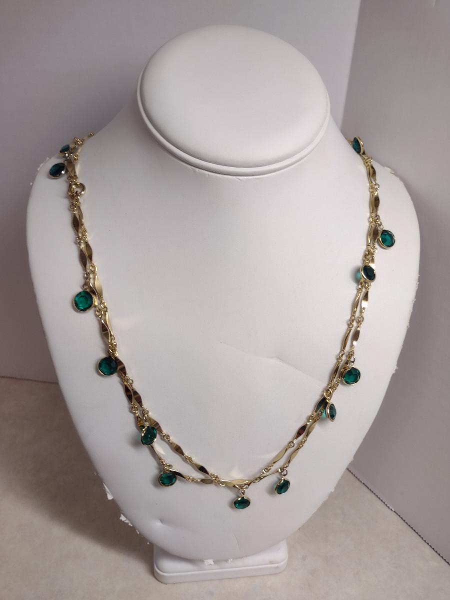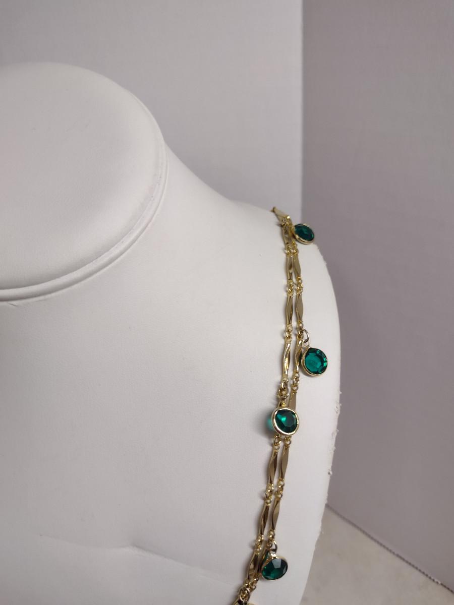 Gold Tone Necklace with Green Glass Accents- Approx 50" Long (#29)